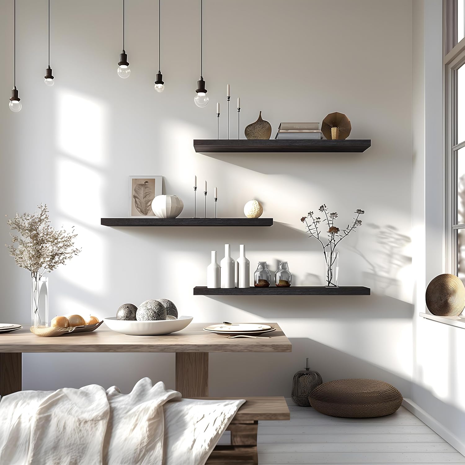 • EASY TO INSTALL FLOATING SHELVES - Includes spot-on instructions with necessary mounting hardware, use hidden metal brackets for installation, steel wall brackets ensure firm fixation, shows no visible support, making it appear to be floating.