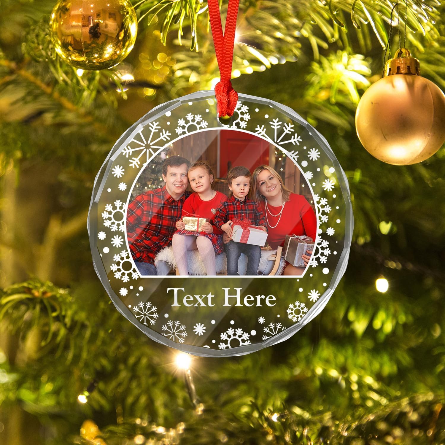 • 🎄Personalized Crystal Photo Ornaments --- Let your special memories live forever! You can add photo of yourself with your family, friends, or anyone close to you, along with any text you desire, to the crystal pendant, and we will customize it specifically for you.