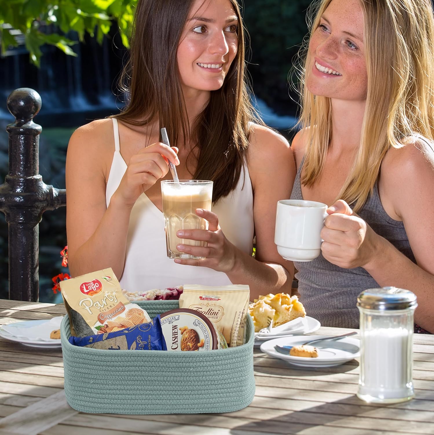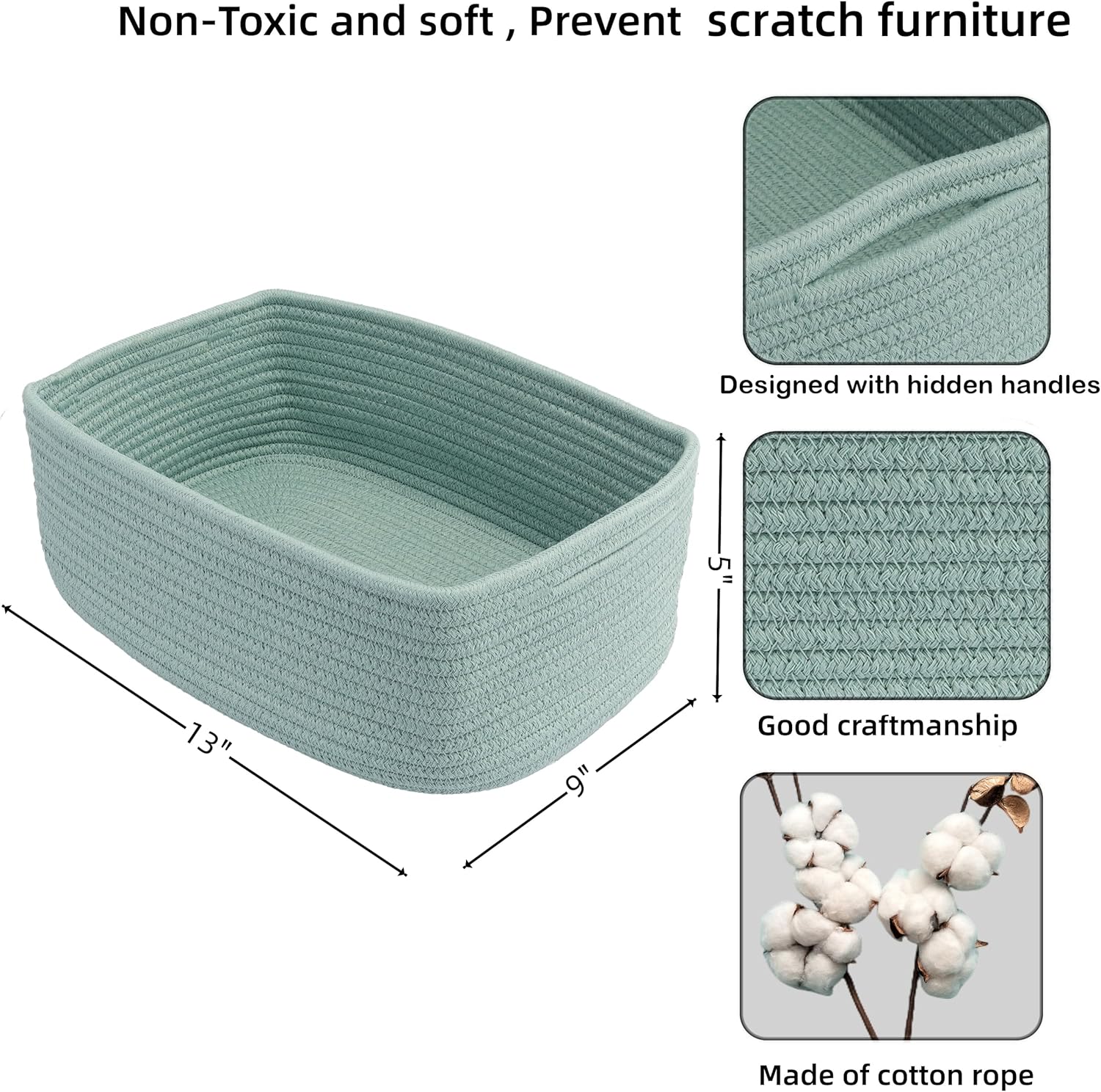 Small Woven Storage Baskets 13“X9”X5“ Decorative Rope Bins for Organizing Shelves, Closets, and Toys, Empty Gift Baskets, Cute Organizer Basket for Home and Office (green, Large)