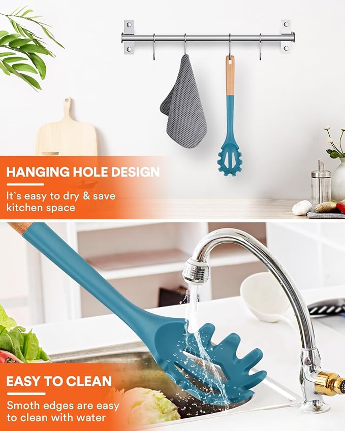 • Just Want To Provide The Best For You : The soft food-grade silicone head is designed for noise-free cooking. Unique sawtooth design, easy to pick up noodles. Whether it is used for stirring or serving spaghetti. Our silicone pasta fork will add more fun to your kitchen