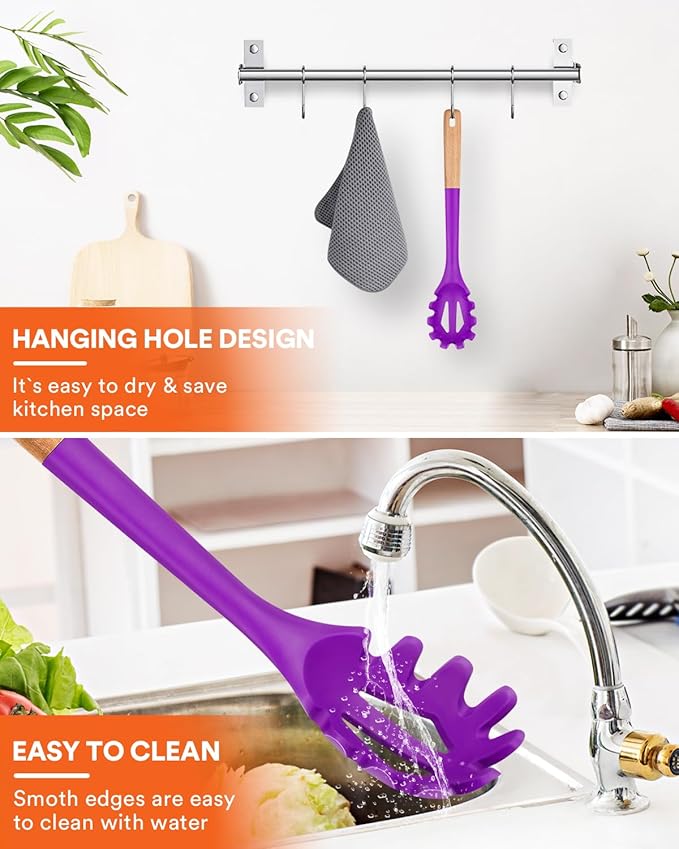 • Just Want To Provide The Best For You : The soft food-grade silicone head is designed for noise-free cooking. Unique sawtooth design, easy to pick up noodles. Whether it is used for stirring or serving spaghetti. Our silicone pasta fork will add more fun to your kitchen