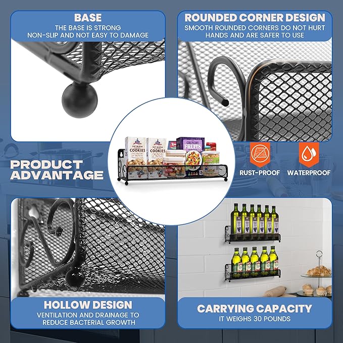 • Large Capacity & Height Adjustable: Our spice racks designed for maximum flexibility, capacity larger 40% than others. wide basket is designed to fit larger items, such as big bottles and cans, providing compatibility with a wide range of kitchen essentials.