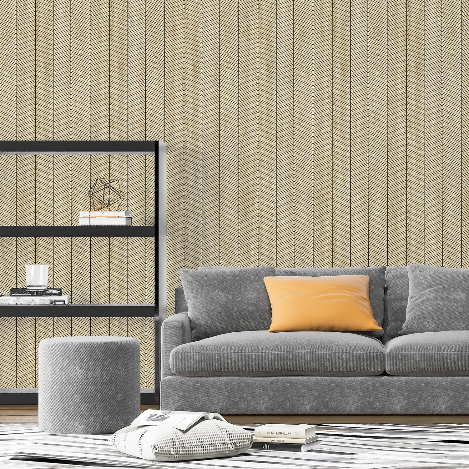 Art3d 4-Pack Glue-On Herringbone Wainscoting Panel for Interior Wall Decor - 104 x 12 Inch Polystyrene Ultralight Slim Slat Wall Panels for Living Room Bedroom, Oak