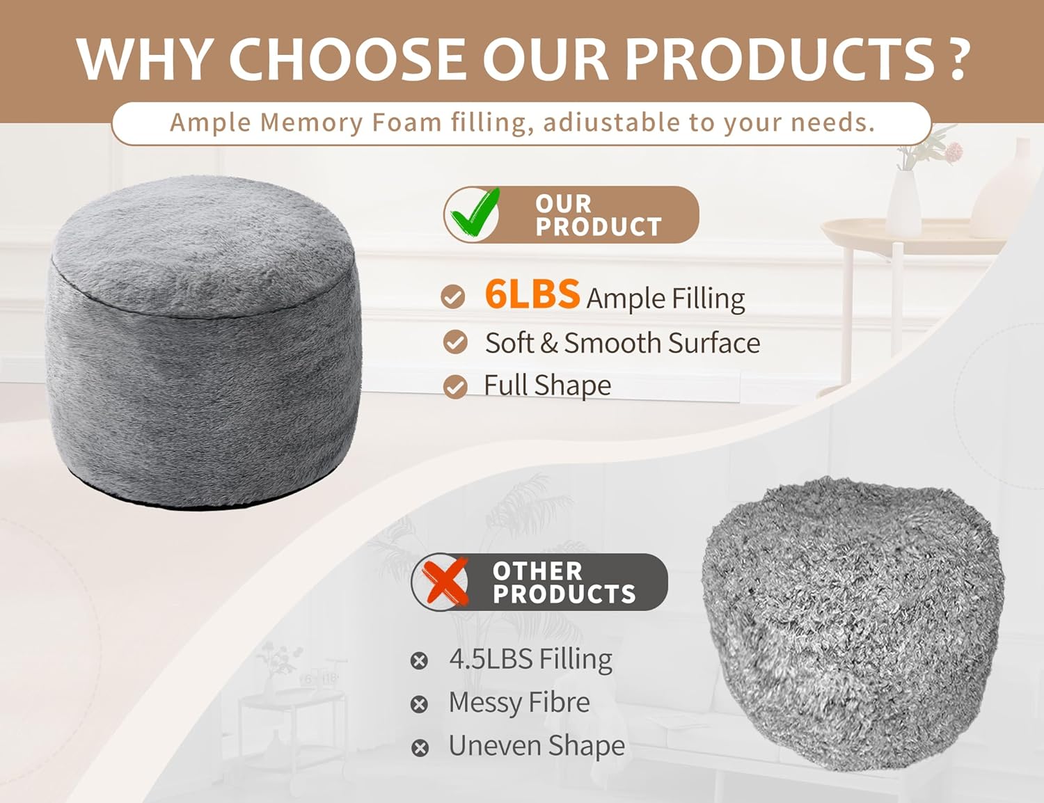 • Size of Pouf Ottoman:This large round ottoman provides long-lasting comfort and support. Each storage ottoman round measures 20"*20"*15" inches. The automan foot rest is filled with ample foam and have a fluffy ottoman cover, making them perfect for use as bedroom chair, bean bag ottomans, or chair ottoman.