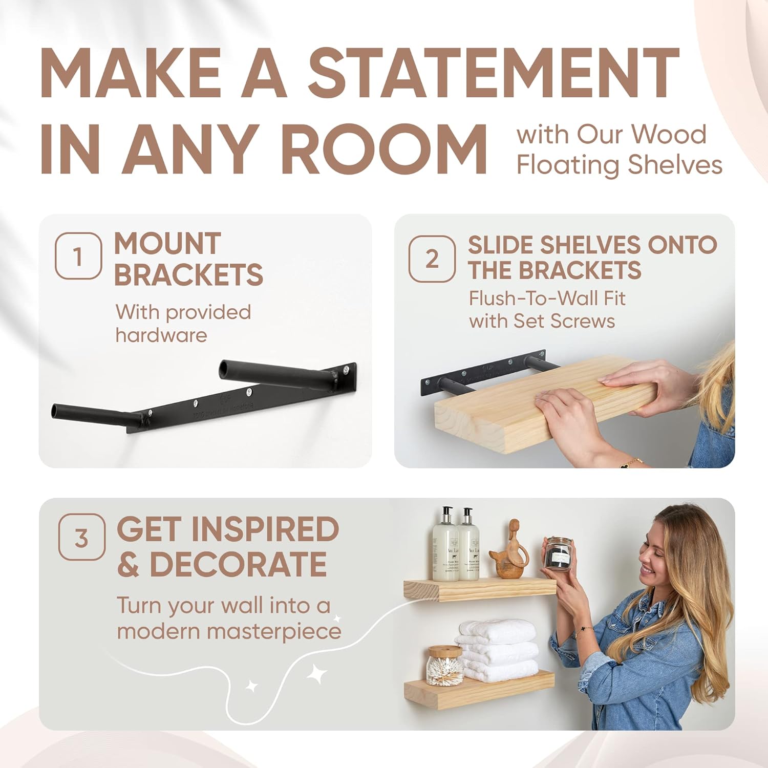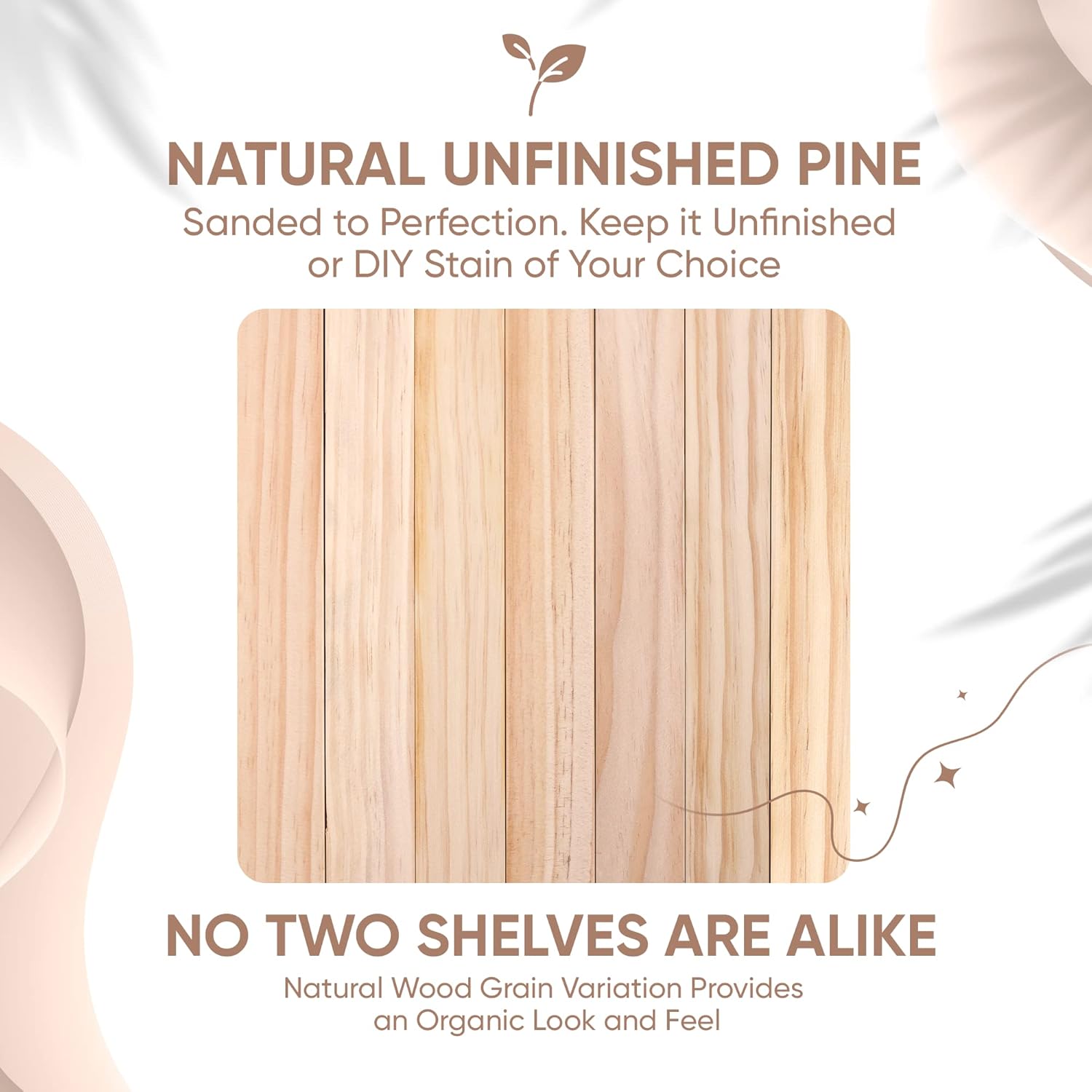 • AUTHENTIC WOOD GRAIN - Enjoy the timeless elegance of real wood. Handcrafted from the finest 1.75" Thick natural pine wood measuring 12" Wide x 6.5" Deep x 1.75". Our shelves highlight the inherent charm and durability of high-quality wood. Each Shelf reveals its unique character of knots and natural wood grain; each ledge is a little different but equally stunning.