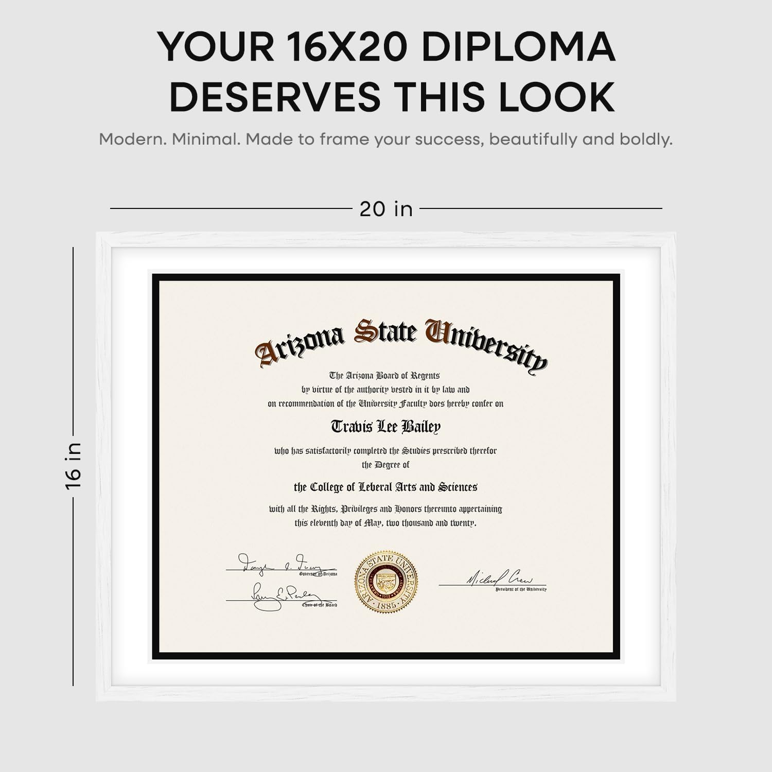 Homeforia 16x20 Diploma White Frame, High End Oak 16 x 20 Certificate Wood Frames with Mat 14 by 17 inch, 20x16 Document Frame Matted to 14x17, Wooden Degree Frames, Tempered Glass, Wall Kit, Set of 1