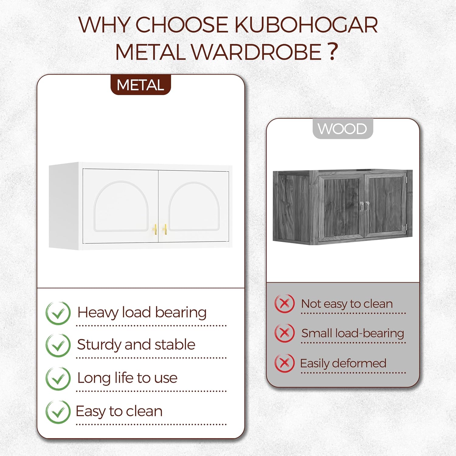 • Combined Uses: Wall mounted cabinets can be mounted on top of Kubohogar closets to increase storage space. At the same time, multiple small wall cabinets can also be combined and arranged to customize your exclusive storage space.