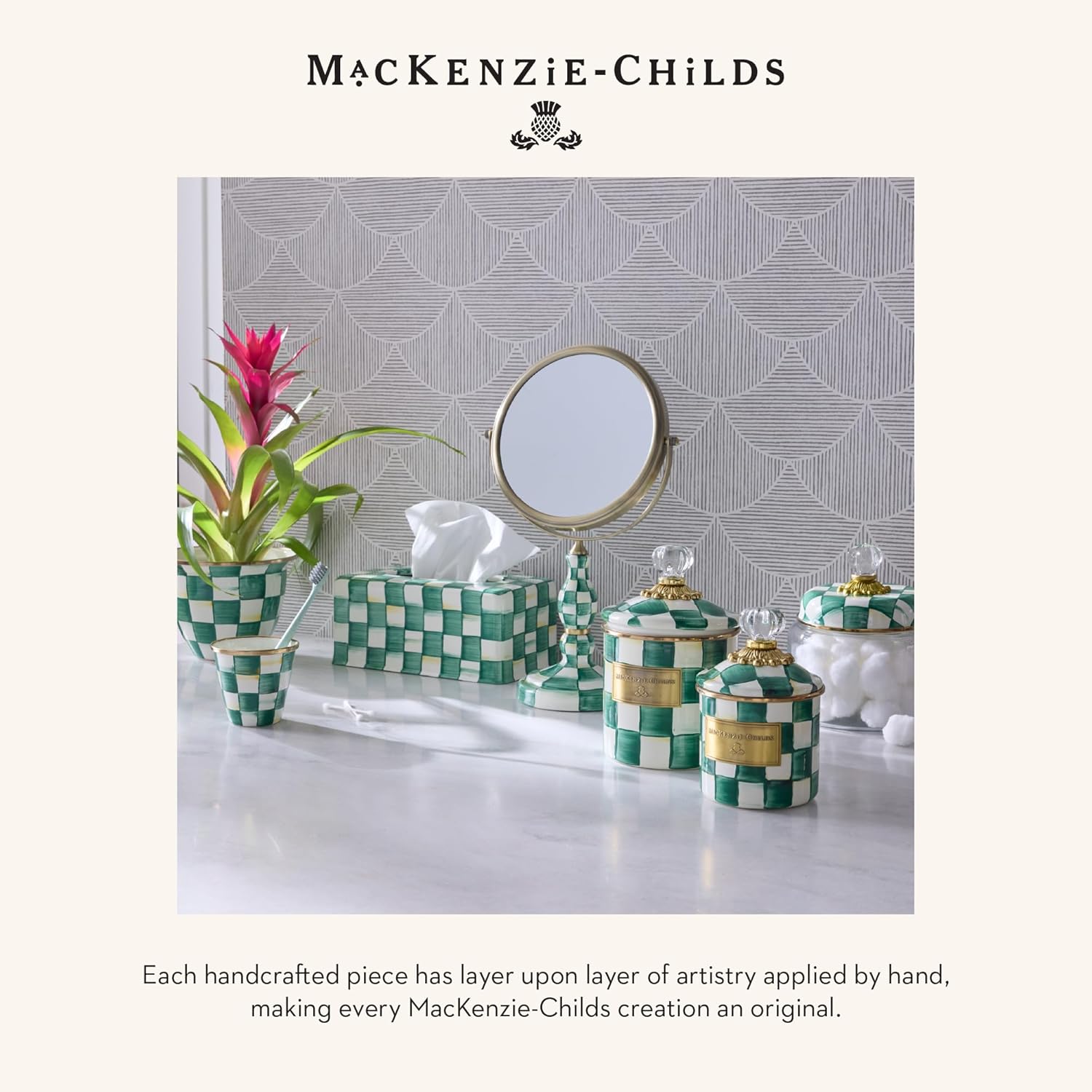 • HOME ACCESSORIES: At MacKenzie-Childs, we make everyday items extraordinary. From the kitchen counter to the garden patio, you can enjoy the magic of MacKenzie-Childs anywhere. We offer gardening decor, cute outdoor planter pots, and more.