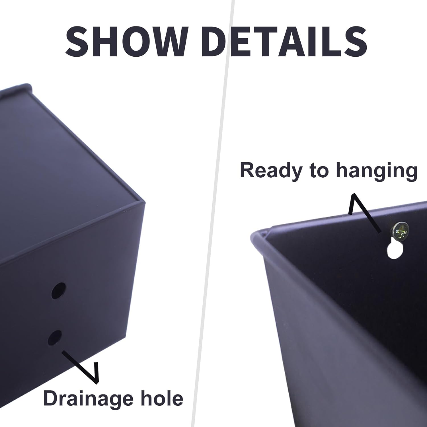 • Maximize Greenery Space with our outdoor wall planter’s slim rectangular design—ideal for tight spaces! The classic black finish blends seamlessly with garden wall art outdoor themes. Includes 6 hooks/screws for instant setup on siding, fences, or sunroom walls.