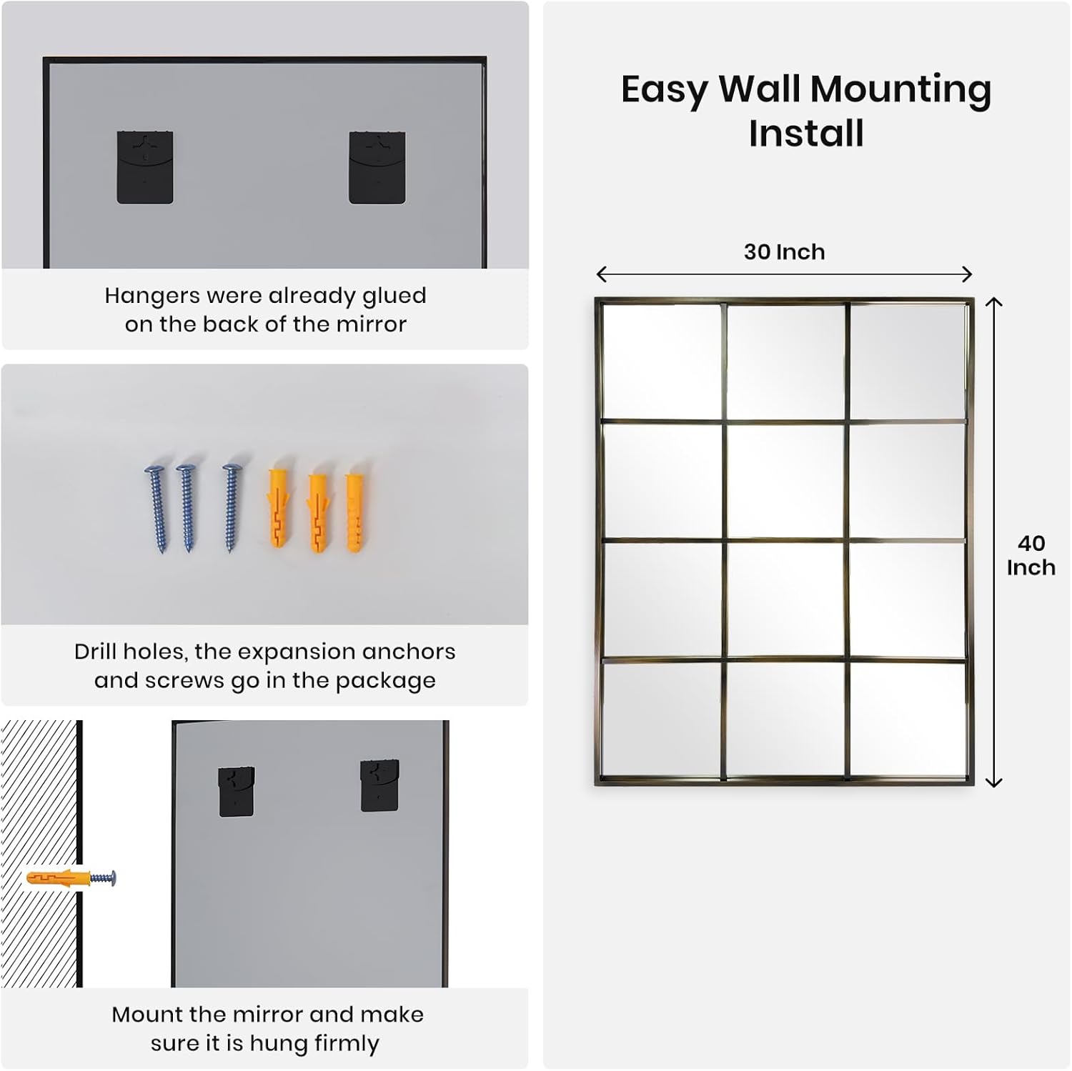 Windowpane Wall Mirror 30"x40" Bronze Wall Mounted Art Pane Mirror Farmhouse Decorative Mirror Leaning Hanging Wall Mirror for Bedroom Living Room Entrance Hallway Wall Decor