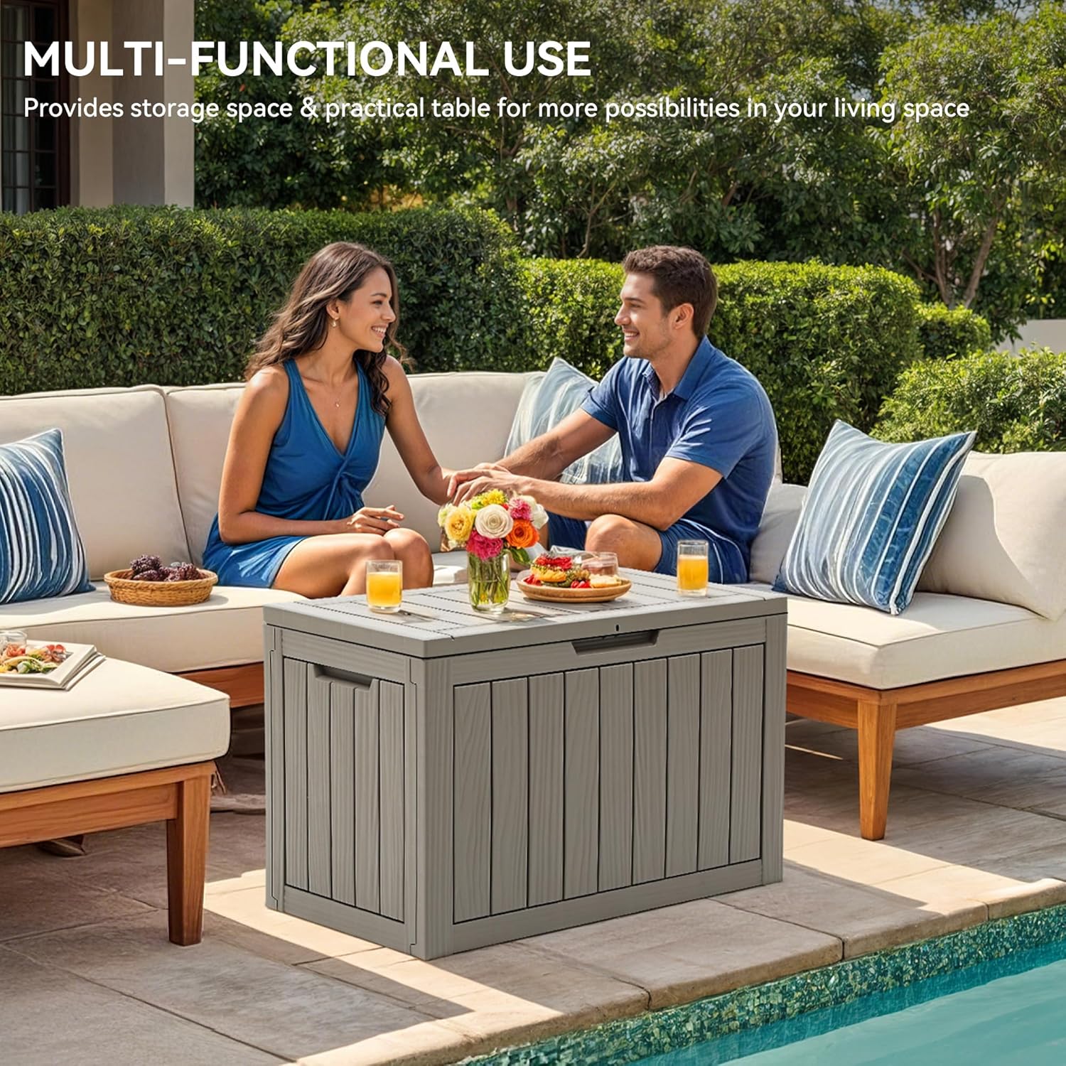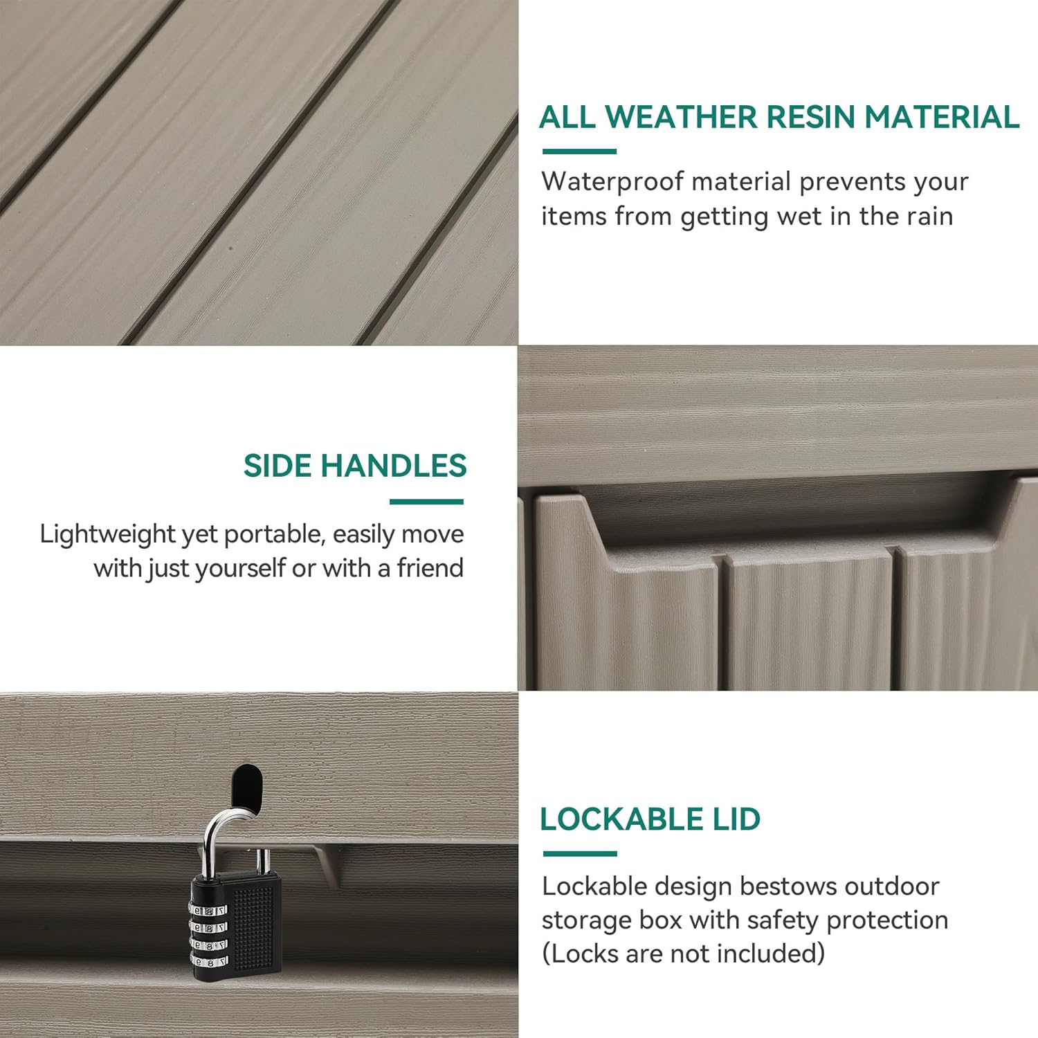 • Built for Outdoors: Enjoy peace of mind with our weather-resistant outdoor deck box; Made from durable PP with a beautiful wood grain finish, ensuring the outside storage box stays vibrant and functional through sun and rain; Minimum maintenance required
