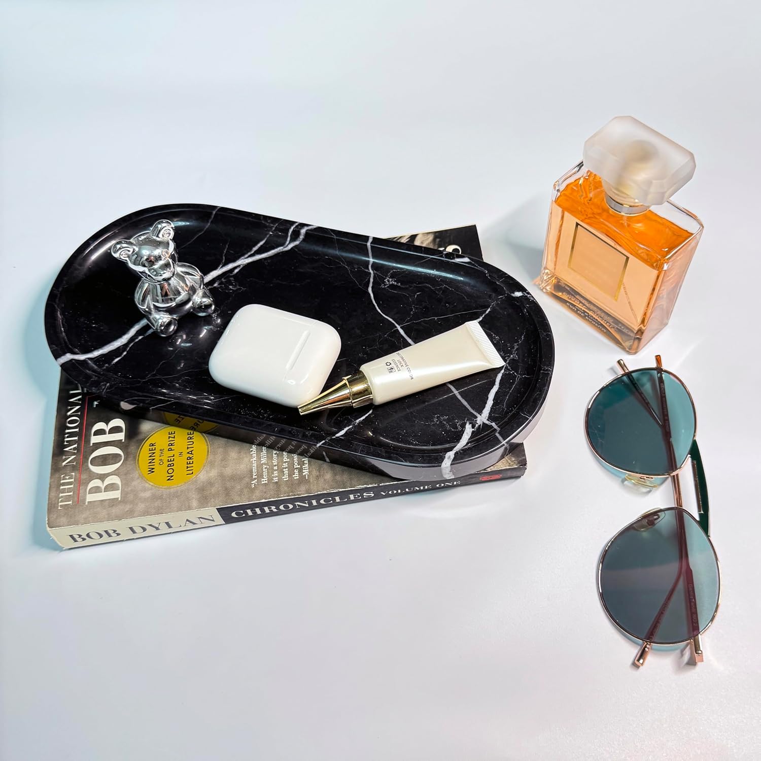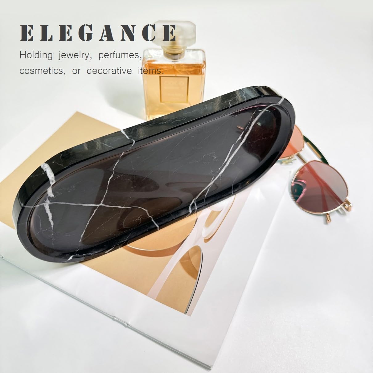 • MULTI-PURPOSE SIZE 10X5 INCHES: This vanity tray fits perfectly in any room. Use it as a bathroom tray for toiletries, a perfume display stone tray, a coffee table stone tray for décor, a nightstand stone catchall tray for keys and remotes, or an entryway catchall tray to keep essentials organized