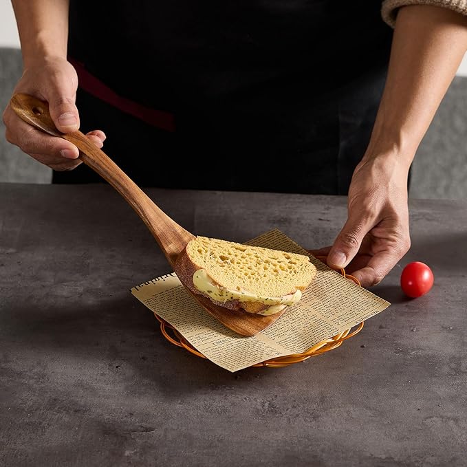 • Durable Construction: This set includes 8 cooking utensils crafted from high-quality teak wood, ensuring long-lasting performance and resistance to wear and tear.