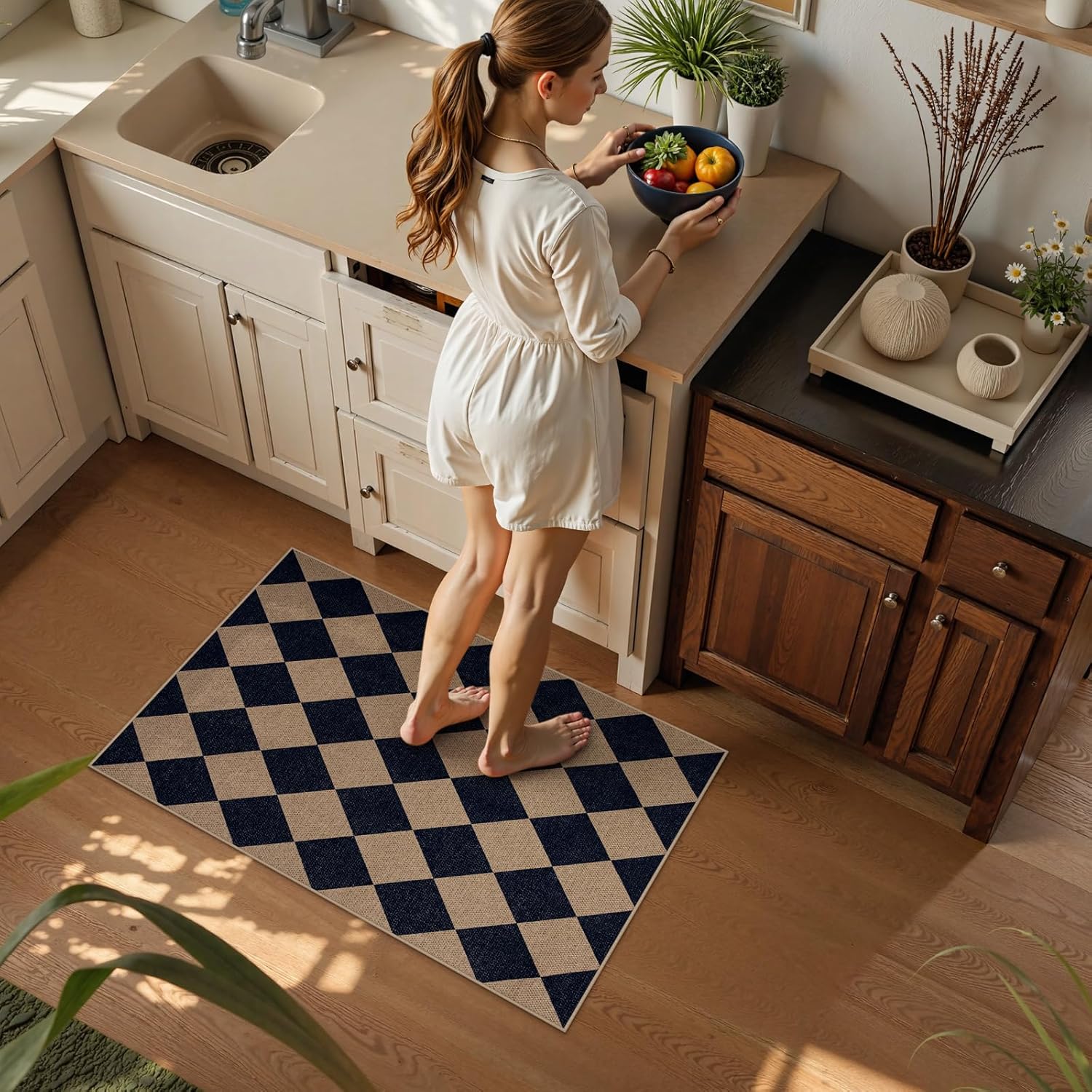 • Functional Rug: Checkered rug lends a sense of simplicity and comfort to your kitchen, entryway, front door, bedroom, foyer or more indoor/outdoor rooms, creating a warm appearance