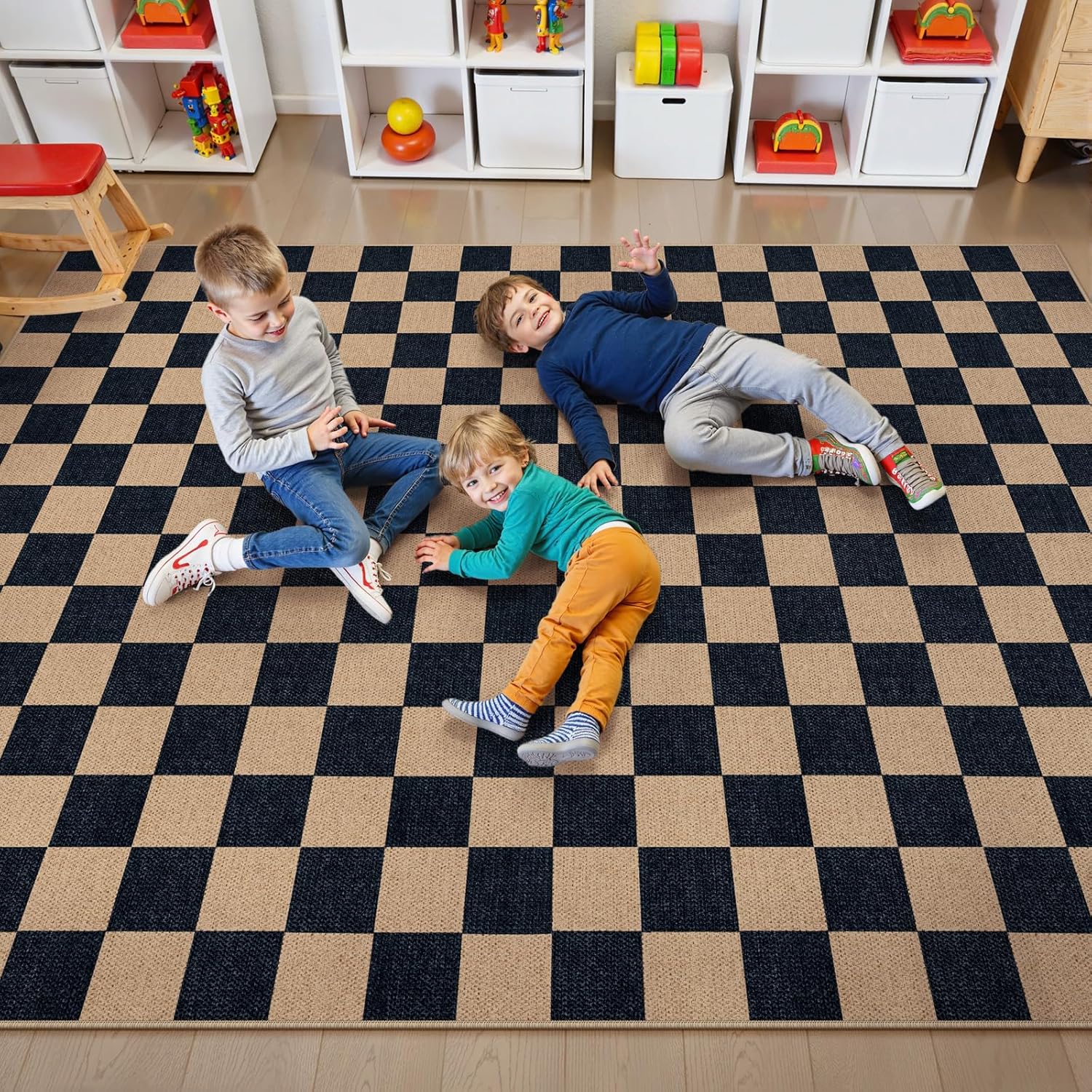 Lahome Checkered Easy Jute Rug, 9x12 Area Rug for Living Room Indoor Outdoor Carpet, Farmhouse Neutral Non Slip Non Shedding Stain Resistance Floor Carpet for Patio Dining Room Backyard