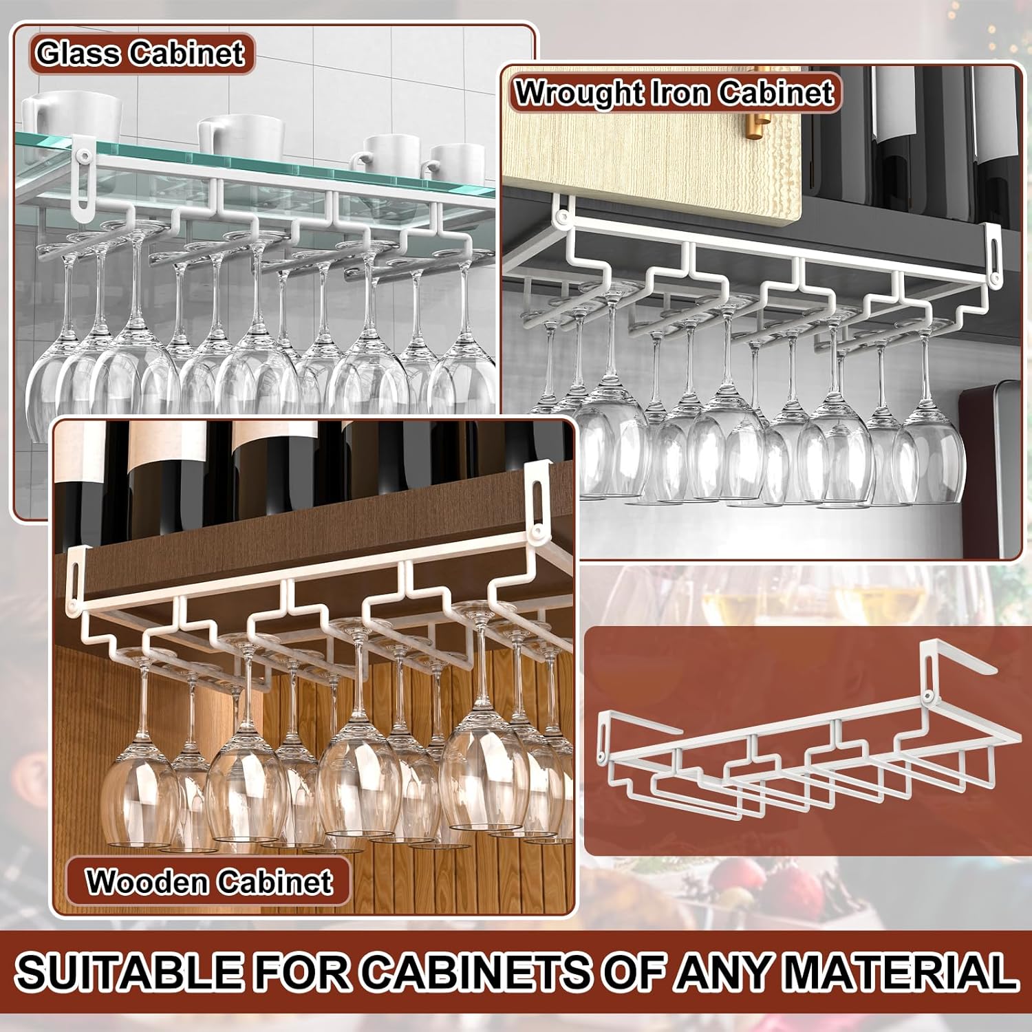 • 【Space Saving】Compact wine glass rack can be hang under any kitchen cabinets, save so space while displaying your glasses! Adds elegance taste to your home or bar's decor, as well as a best gift for wine lovers.