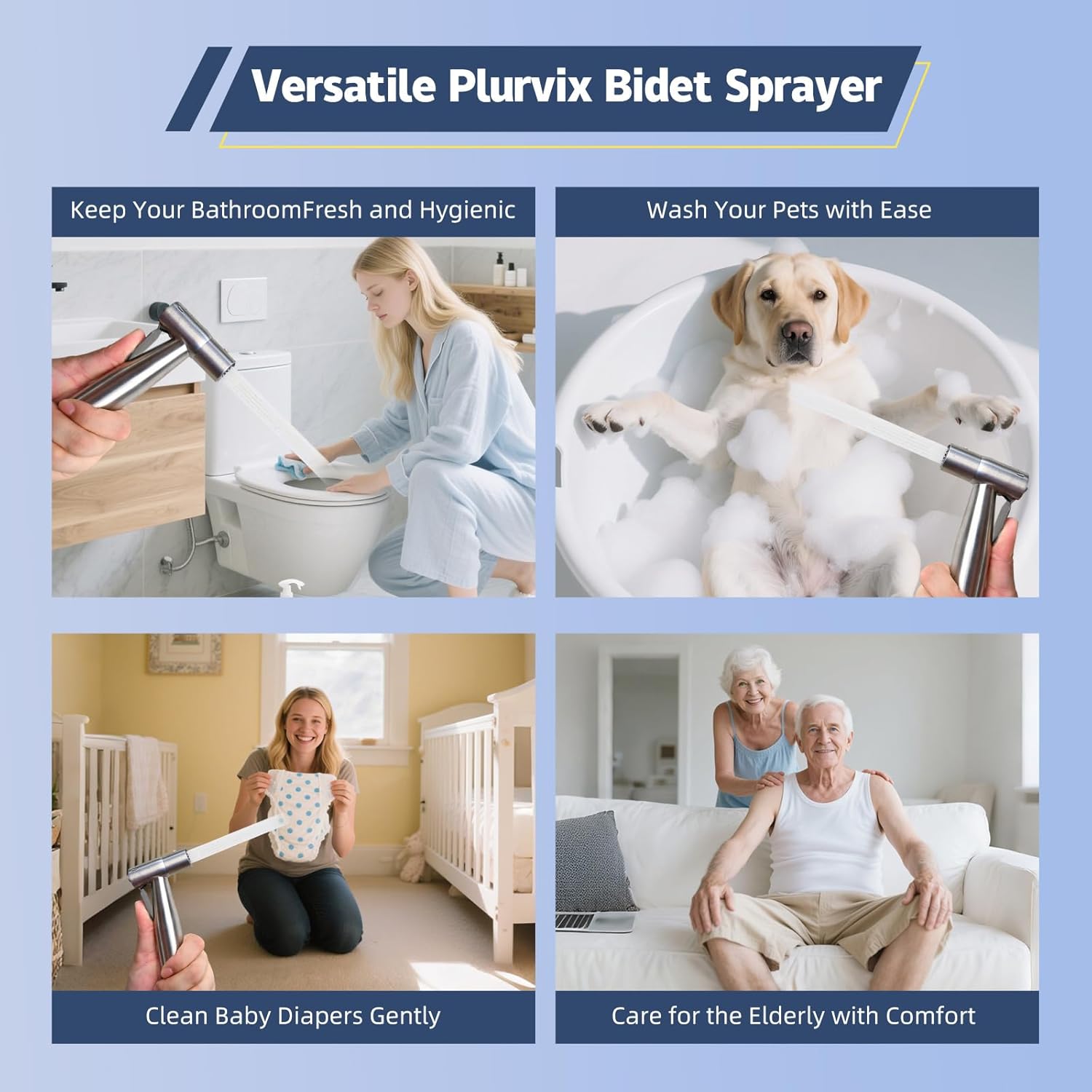 • Versatile Bidet Sprayer - This handheld spray hose is not only designed for personal cleansing but also provides gentle and thorough cleaning for women during pregnancy and menstrual cycles. Additionally, it serves as a diaper sprayer, toilet cleaner, bedpan washer, and even a convenient pet shower.