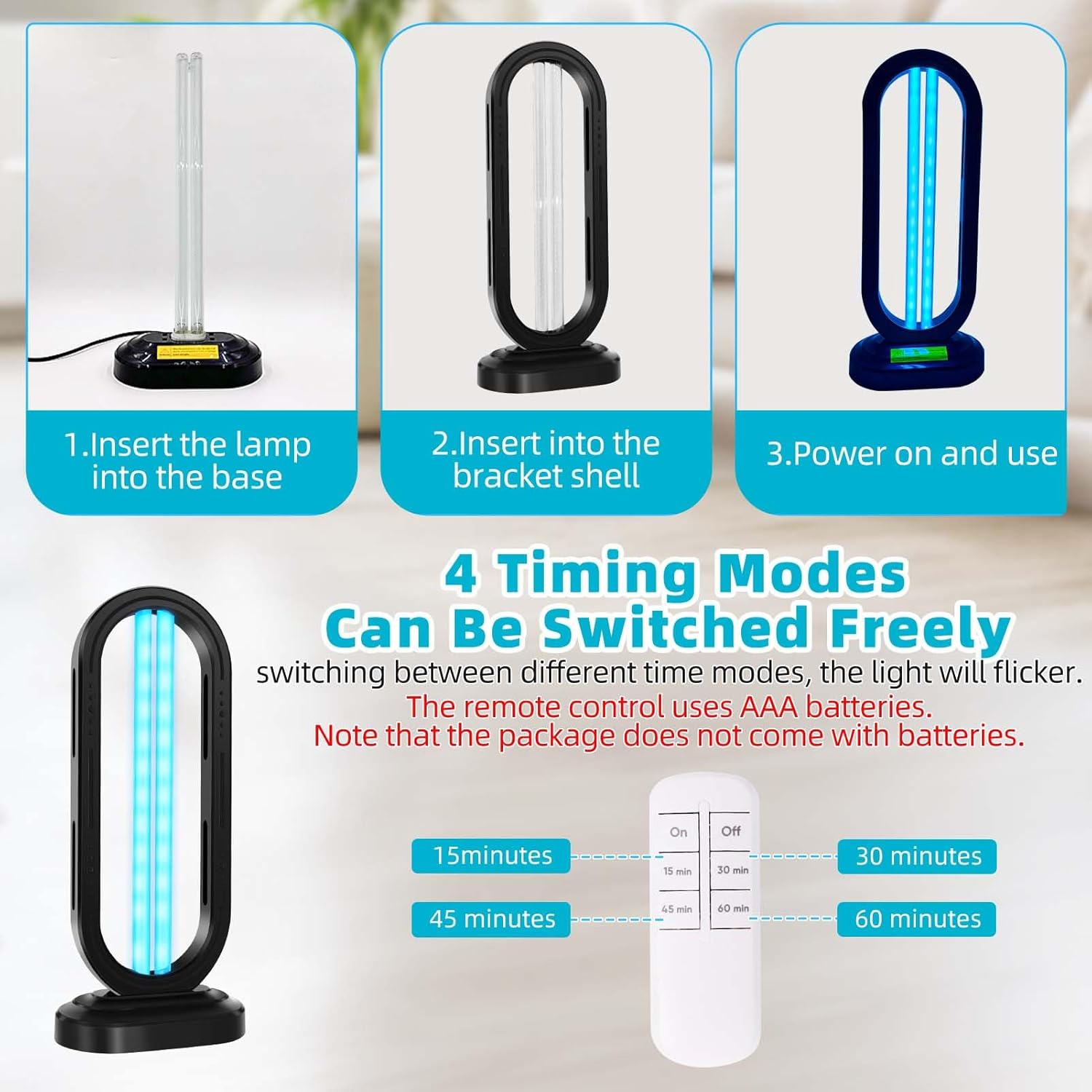• Convenient Timing: The UV light sanitizer has 4 timing modes, the remote control uses AAA batteries. (Batteries are not included in the package.) It can be timed by remote control for 15/30/45/60 minutes.
