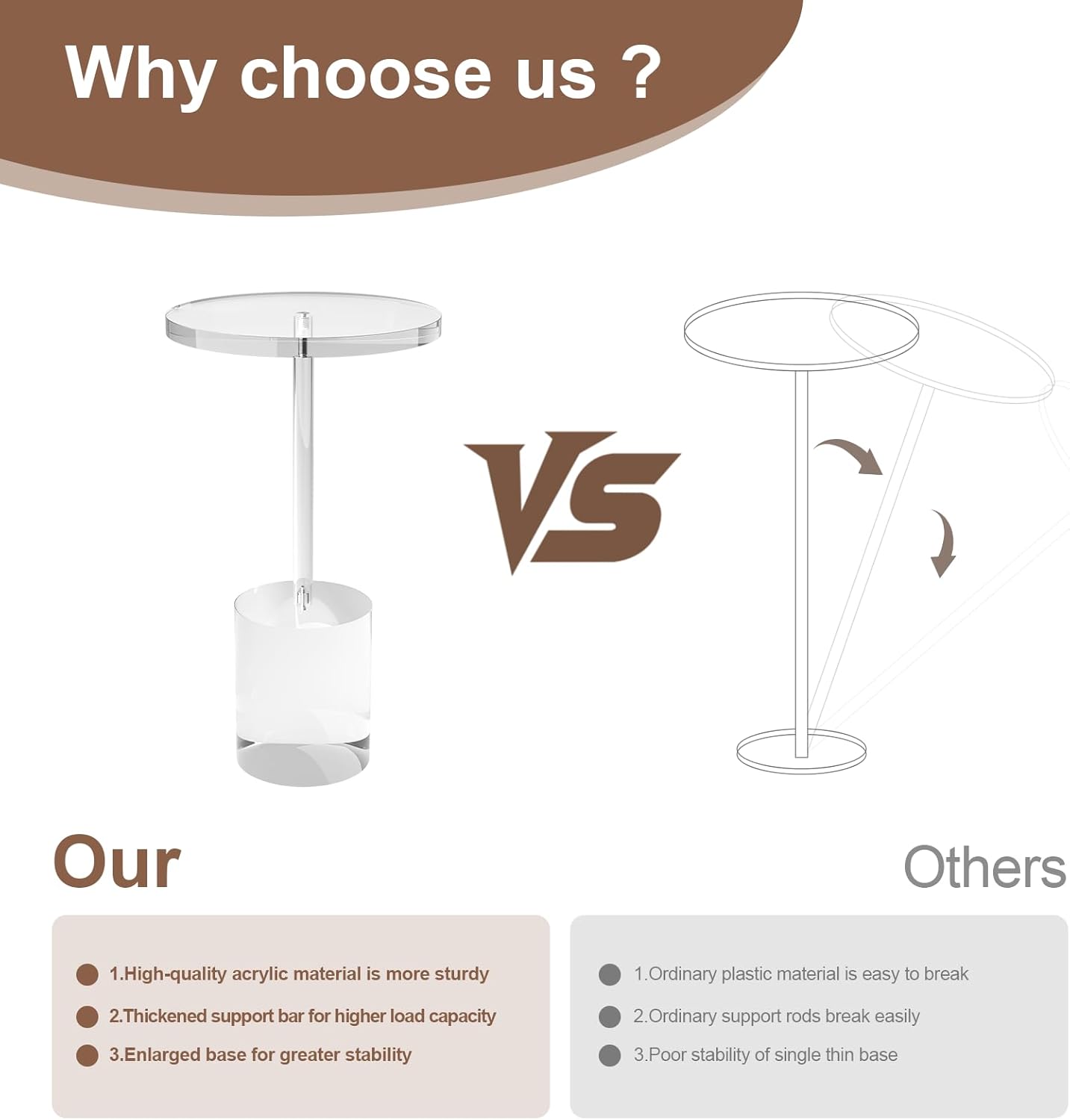 • 【High Quality】Crafted from premium acrylic, this acrylic side table resists scratches, drops, and discoloration. Its high transparency, glossy finish, and easy-clean surface ensure lasting clarity and durability.