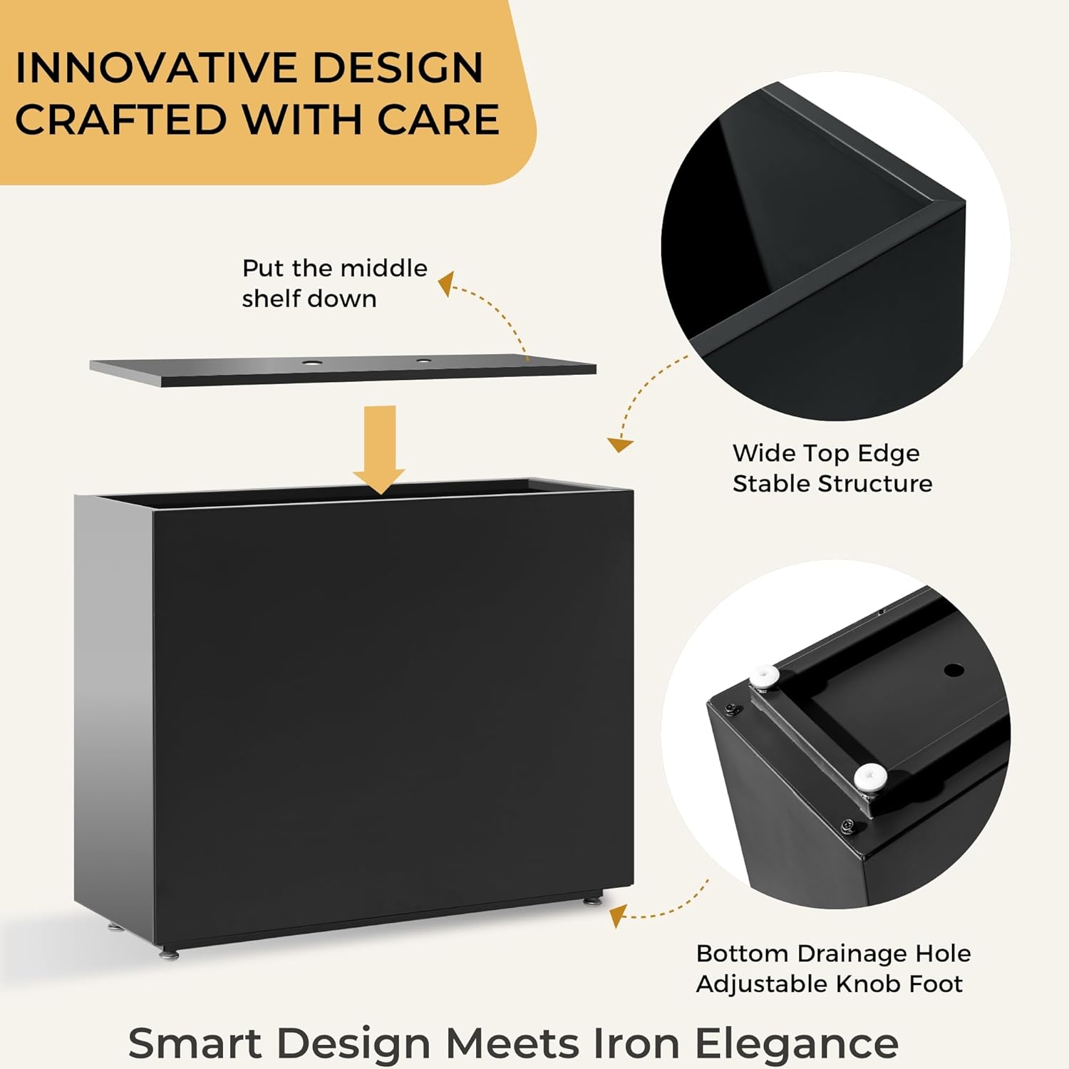 • Versatile & Stylish Design: Adjustable feets for uneven surfaces; sleek black finish enhances modern outdoor decor as a functional divider or planter.