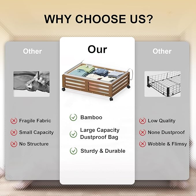 • 【Sturdy & Durable】Made from 100% natural bamboo; supports up to 120 lbs; includes a dust-proof bag for seasonal clothing and essentials