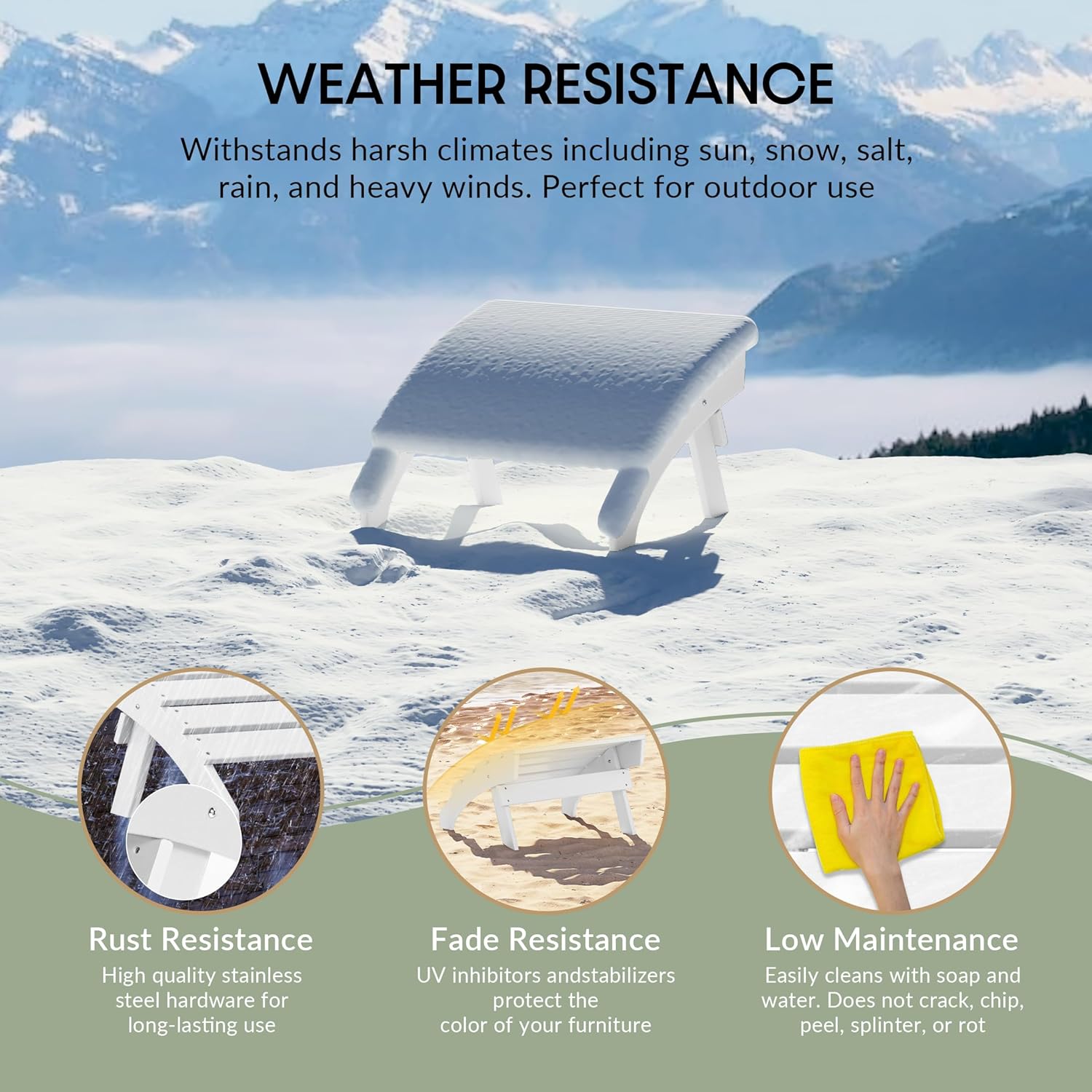 • All Weather Resistant: This Adirondack foot rest are made of HDPE plastic, its weather resistant and UV fade resistant material can withstand in various enviromental pressure and not easy to dent, crack , peel or rot as wood.