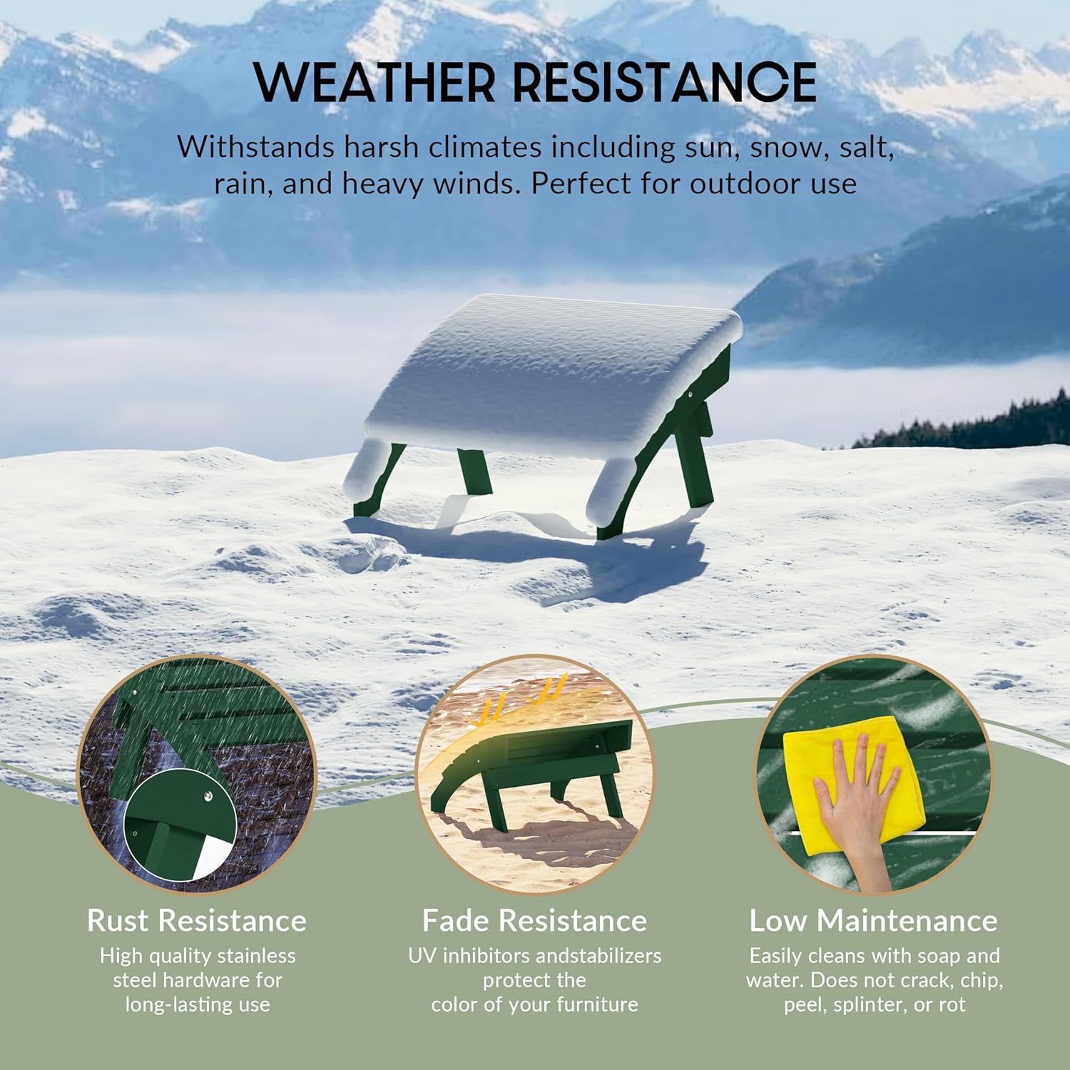 • All Weather Resistant: This Adirondack foot rest are made of HDPE plastic, its weather resistant and UV fade resistant material can withstand in various enviromental pressure and not easy to dent, crack , peel or rot as wood.