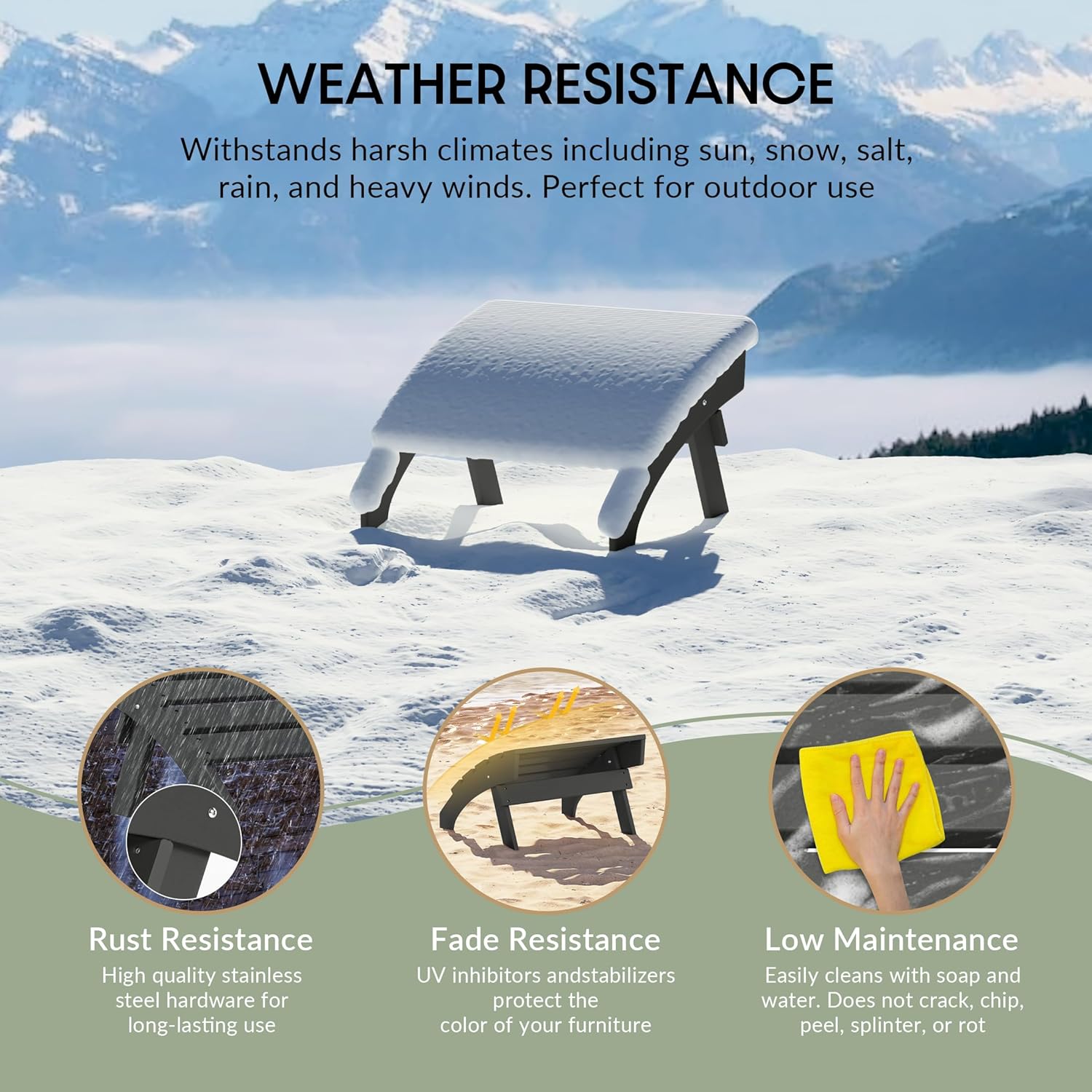 • All Weather Resistant: This Adirondack foot rest are made of HDPE plastic, its weather resistant and UV fade resistant material can withstand in various enviromental pressure and not easy to dent, crack , peel or rot as wood.