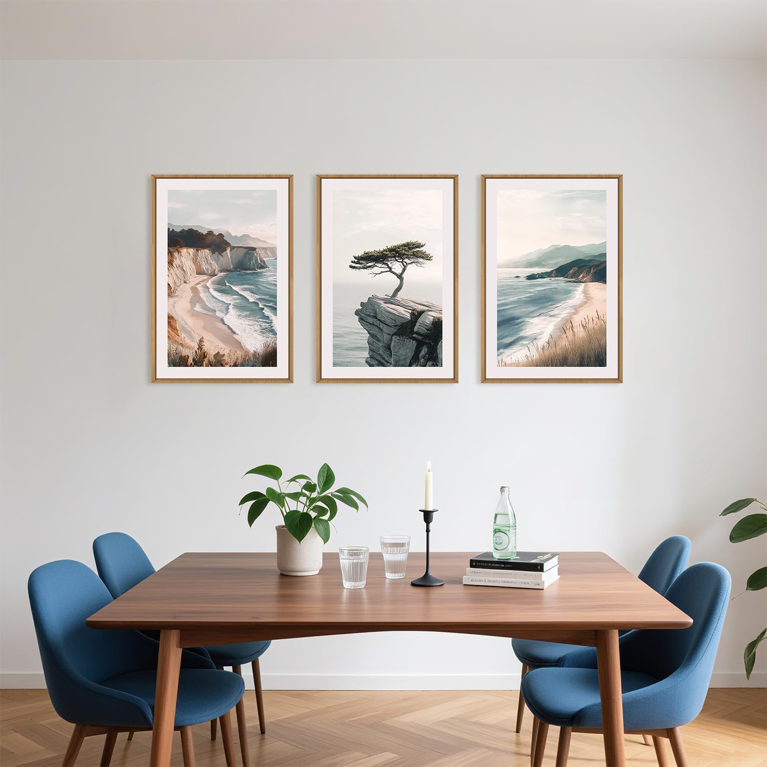• 【Ocean Beach Wall Art Set】This ocean beach framed canvas wall art set executed in a charming nature style, captures ocean and trees, evoking an poetic atmosphere. Its modern organic farmhouse aesthetic is reminiscent of countryside charm. Utilizing this artwork as part of your decor will make your room full of poetry.