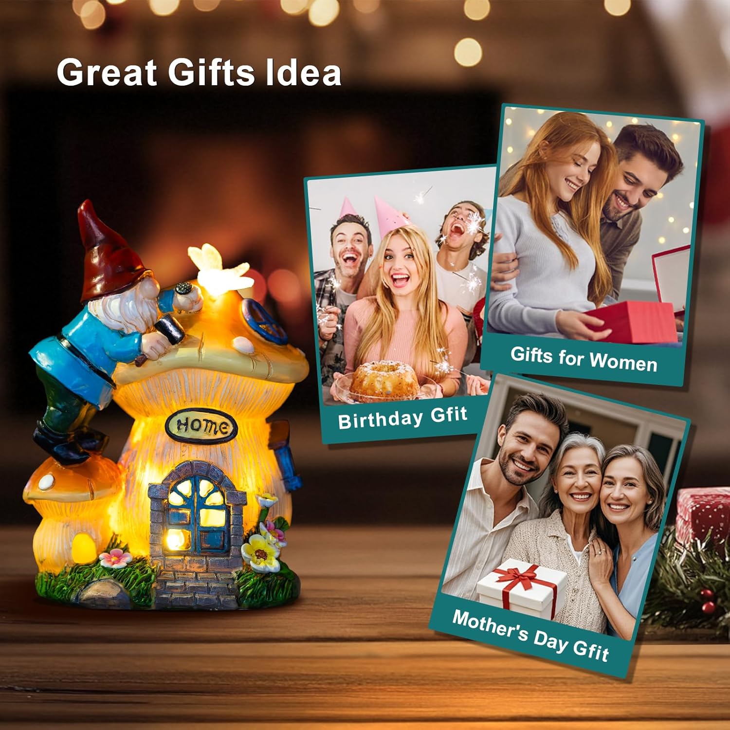 • 【Unique and Creative Design】This solar garden gnome statue is full of fantasy and creativity with the theme of gnomes building mushroom houses. Place it in the courtyard, as if you are instantly in the fairy tale world, adding a unique charm to your outdoor space.
