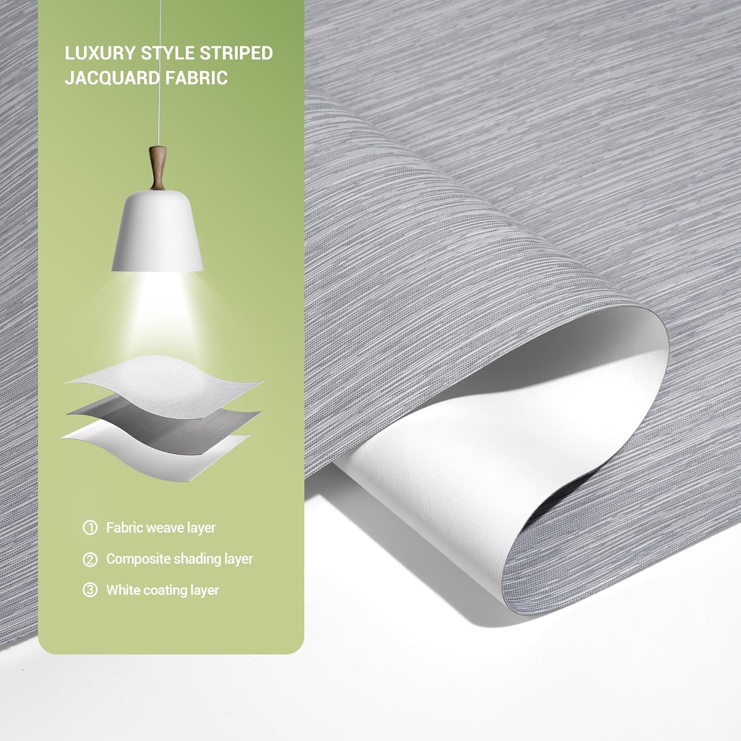 • [Luxurious Jacquard Crafted Fabrics] New blackout roller blind fabrics made of Jacquard, with interlaced weave, richer texture, more skin-friendly and delicate hand feel, make your home more artistic. It can block the sunlight and protect your privacy. The fabric is laser cut so that the fabric has no burrs.