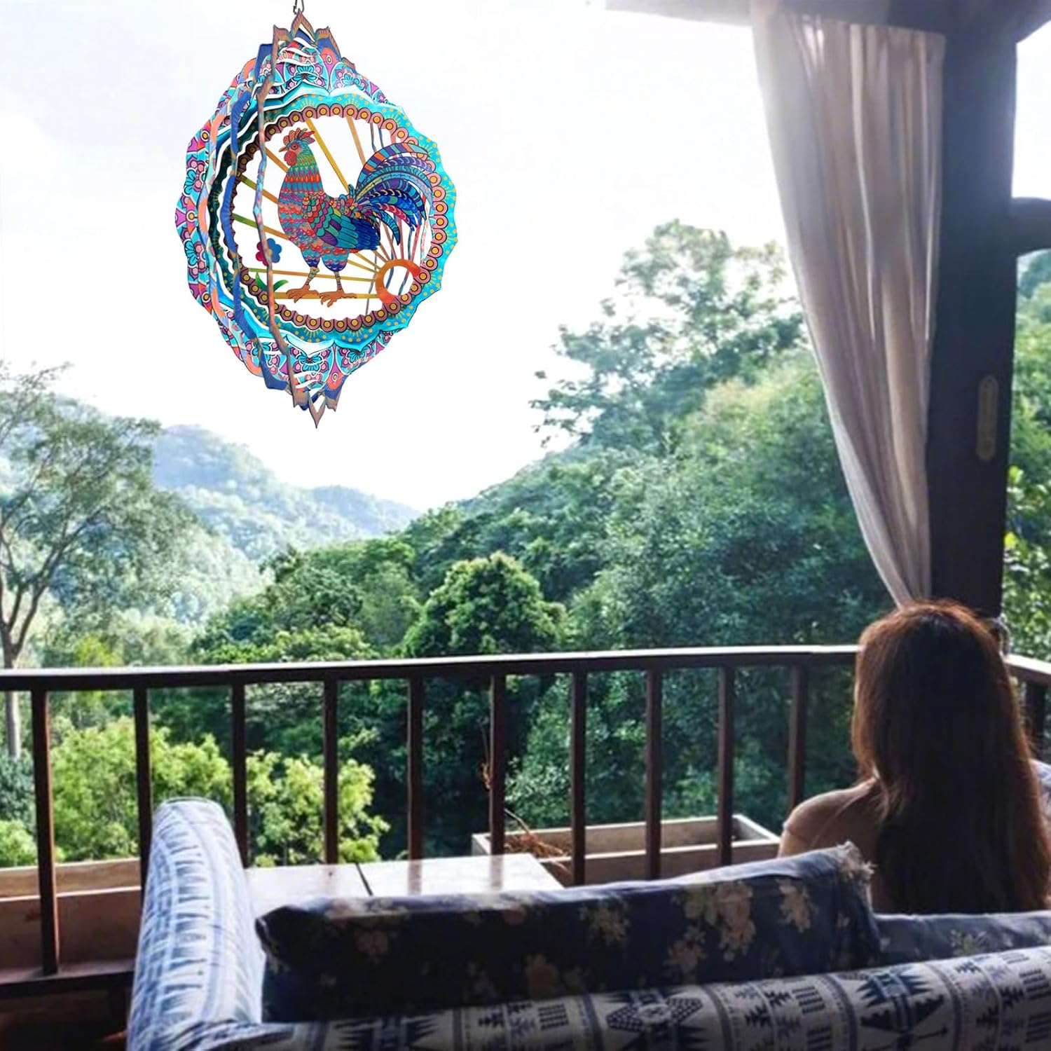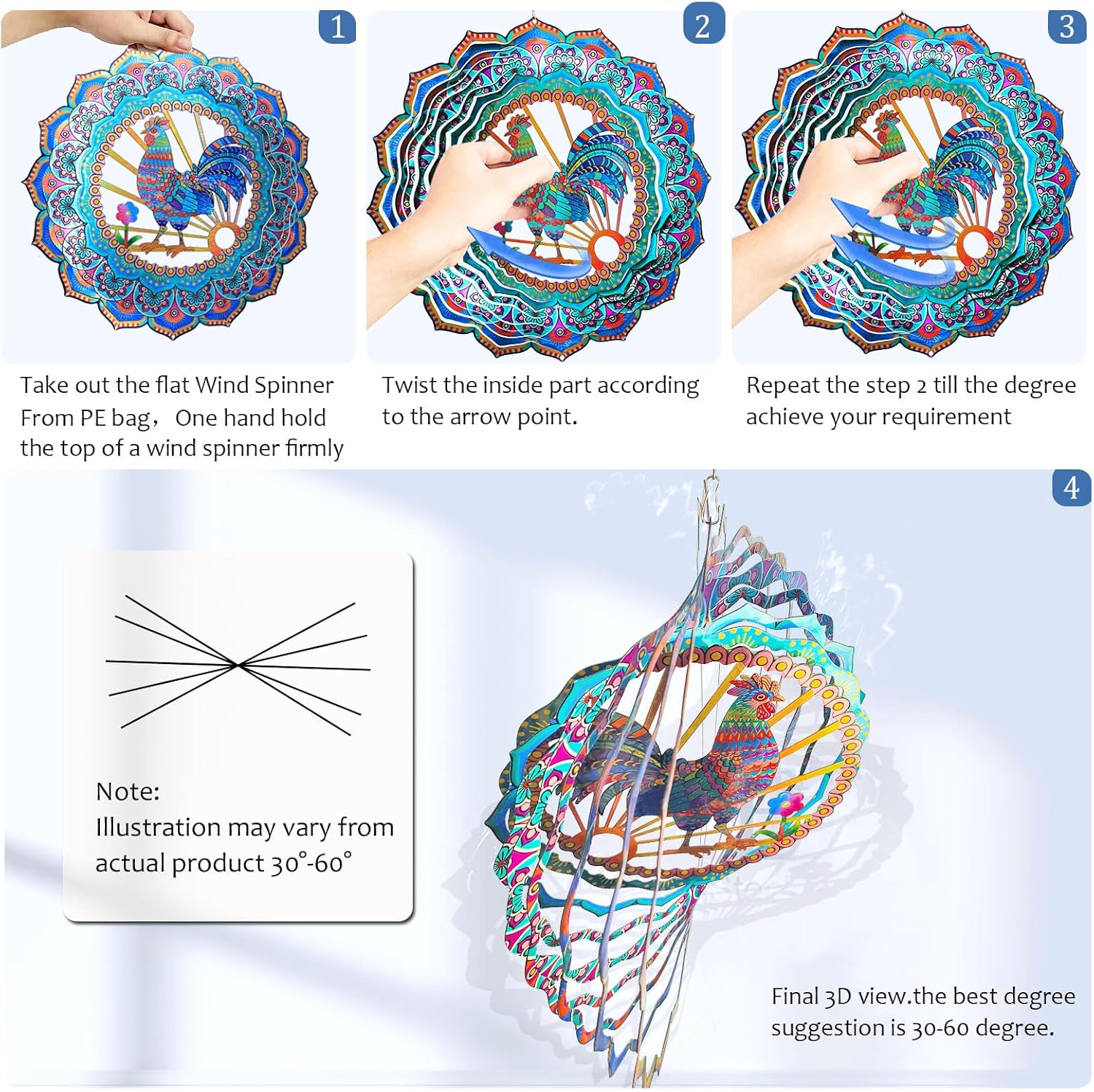 • ★【Fascinating 3D Reflective Wind Spinner】12 inch colorful yard art rooster wind spinner follows the trendy kinetic art design style. The wind spinners hanging can rotate 360°,creating a magical 3D stereoscopic visual effect by different colors on the surface,Reflective gilt powder material gives off a sparkling,like a beam of sunlight through the night and bringing you strength,courage and vitality,add captivating and magical visuals and bring stunning views to your home,garden and yard.