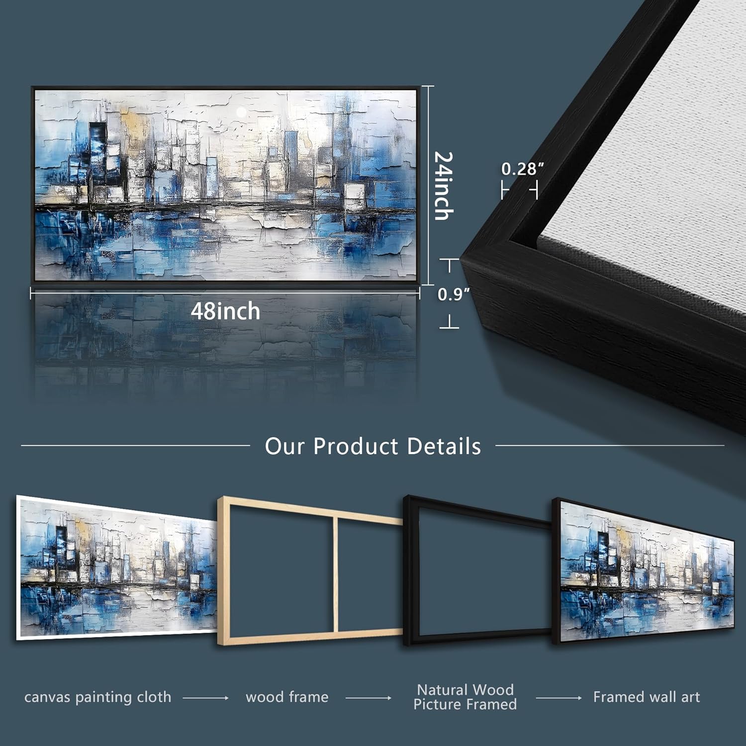 • Framed Wall Art Size: 24x48 inches (60x120 cm) Blue Abstract,Makes a great focal point for a living room, bedroom, office, or any space that needs natural beauty