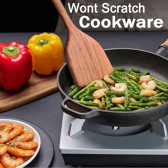 Wooden Spatulas for Cooking Non-Stick Kitchen Pan Toolset 2 PCS Set, Natural Teak Kitchen Utensils,Smooth Finish Utensils Fried Spatula,Turner Non-Stick Wooden Cooking Utensils