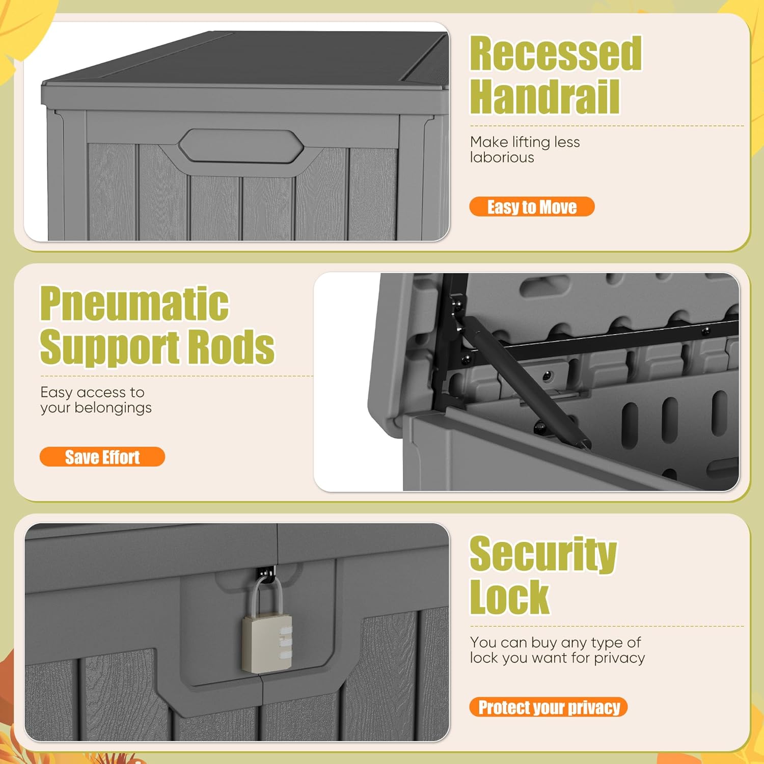 • Function Design: Equipped with two pneumatic support rods, it can be easily opened and slowly closed to safely access your items and provide you with protection. Lockable lid ensures your items are more secure.