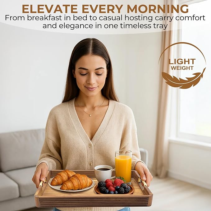 • Premium Acacia Wood & Durable Design Crafted from solid Acacia wood with reinforced edges—this serving tray stands up to daily use without cracking or warping.