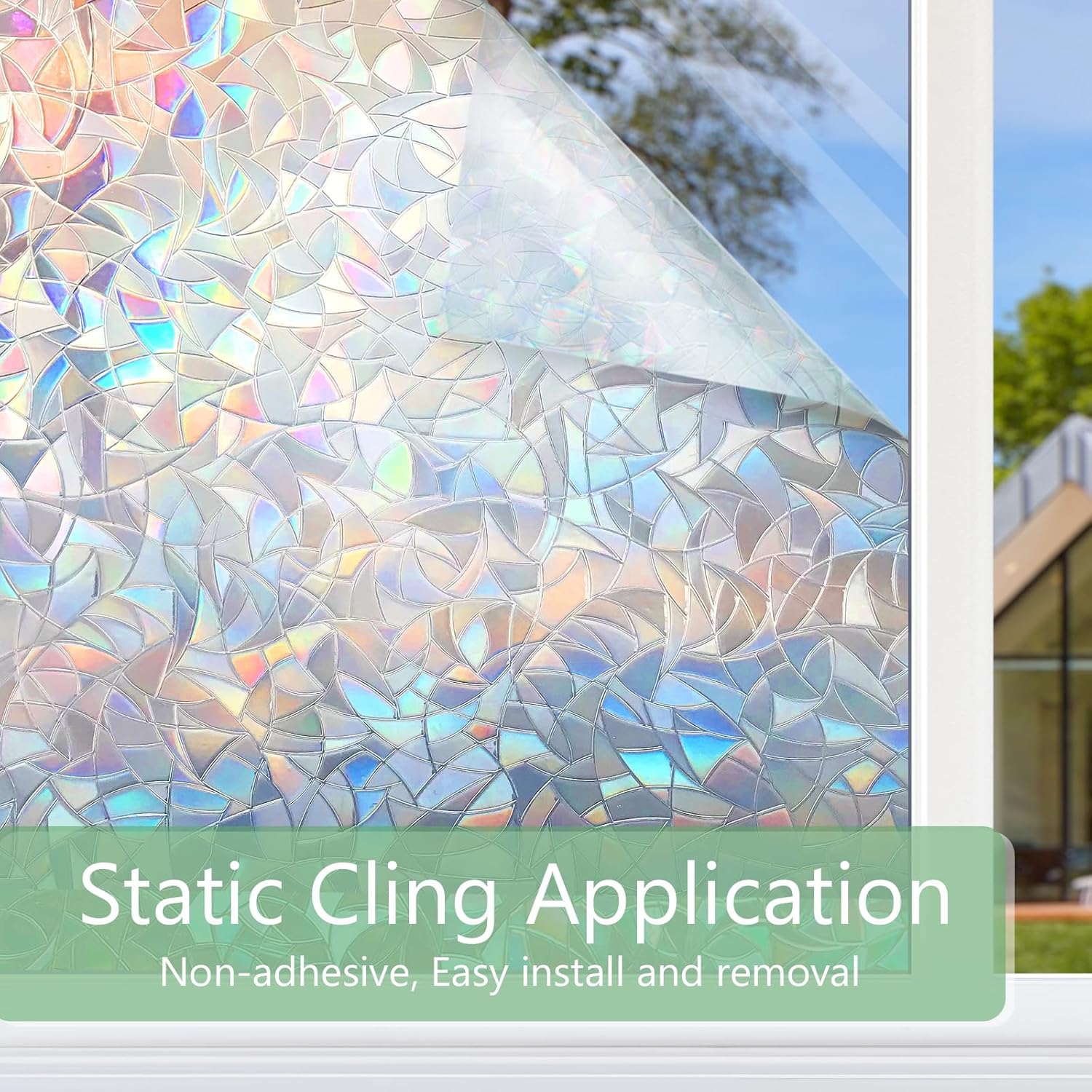HIDBEA Window Privacy Film Static Clings, Rainbow Window Film, 3D Decals Non-Adhesive Window Vinyl Film for Home Door, 35.4 Inch × 6.5 Feet