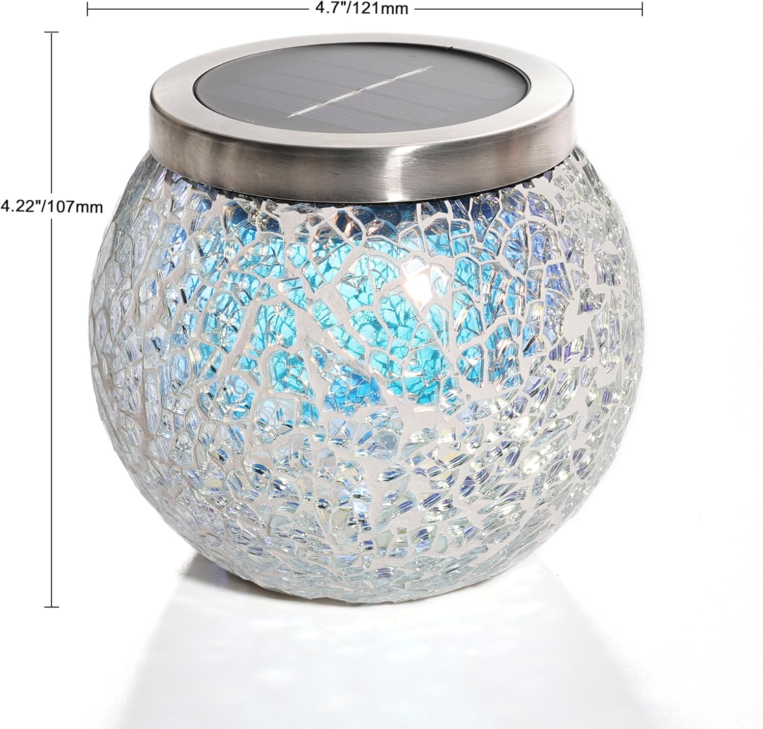 Cooo 2 Pack Heavy Solar Mosaic Crackle Glass Lights with Dual Solar Panels, Color-Changing RGB Lantern, Exclusive Dazzling Glass, Waterproof Outdoor Table Lamps Garden Lamp Landscape Path Light