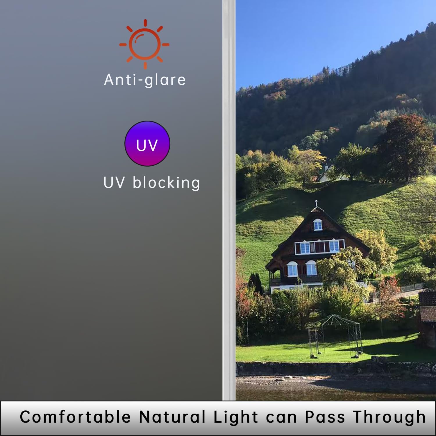 • 【UV Protection】Glass film for window privacy, shade window film can block 98% of ultraviolet rays, protect your eyes and skin from damage, and prevent furniture from fading. It allows natural light to pass through, controlling glare and blocking UV rays to create a more comfortable living space for you and your family.
