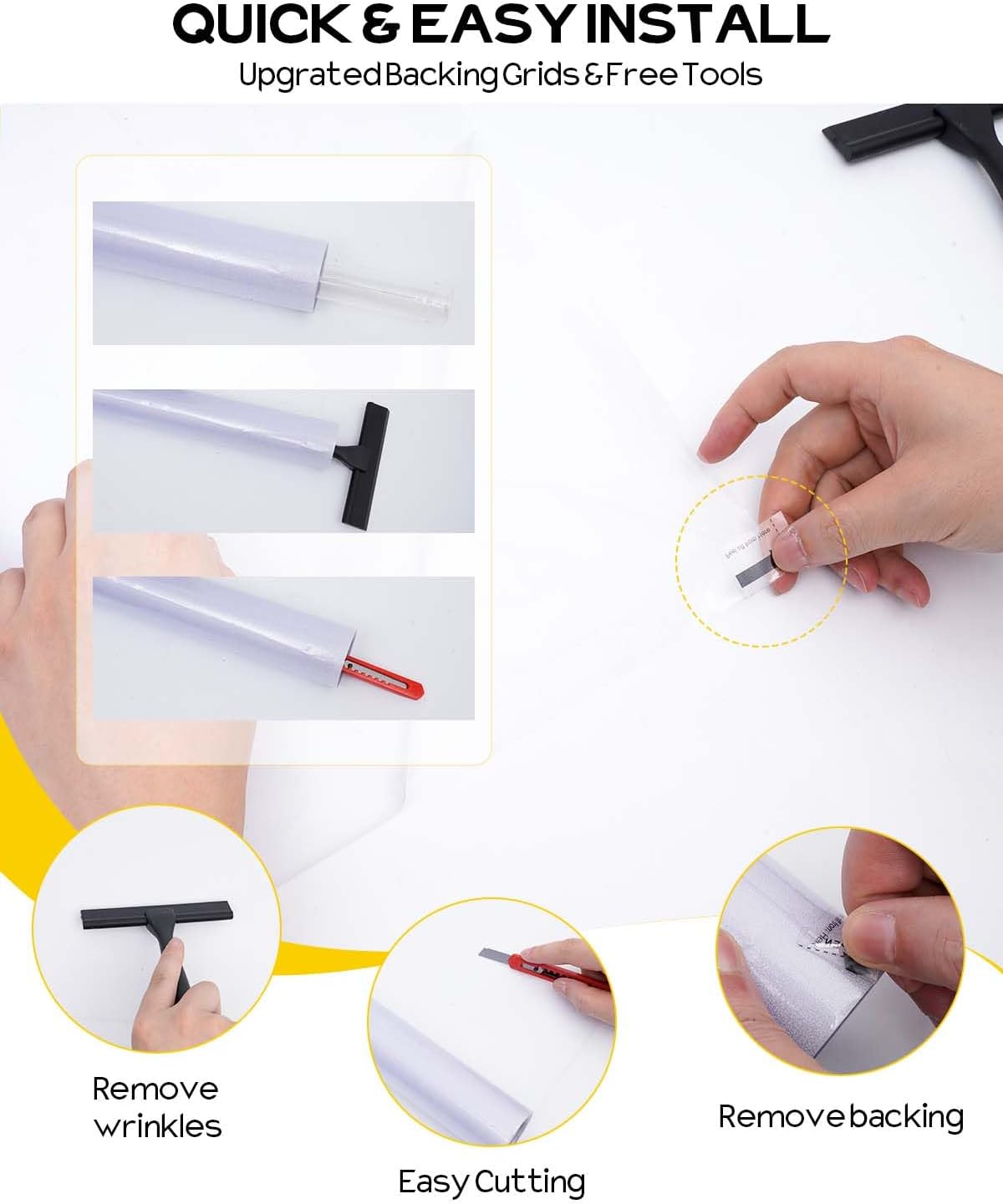 • [Installation Tips]: Please make sure that the surface, edges and corners of the window are clean enough without any dust, and remember to remove the transparent back film before installation; During installation, spray plenty of water on the surface of the window and on the back of the window privacy film to ensure effective adhesion! Note: Not for use with frosted, cut or machined glass that does not have a smooth surface