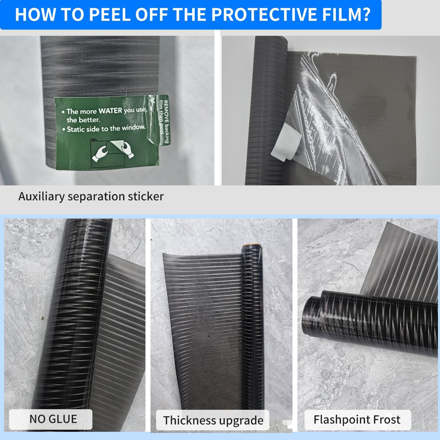 • [Installation Tips]: Please make sure that the surface, edges and corners of the window are clean enough without any dust, and remember to remove the transparent back film before installation; During installation, spray plenty of water on the surface of the window and on the back of the window privacy film to ensure effective adhesion! Note: Not for use with frosted, cut or machined glass that does not have a smooth surface