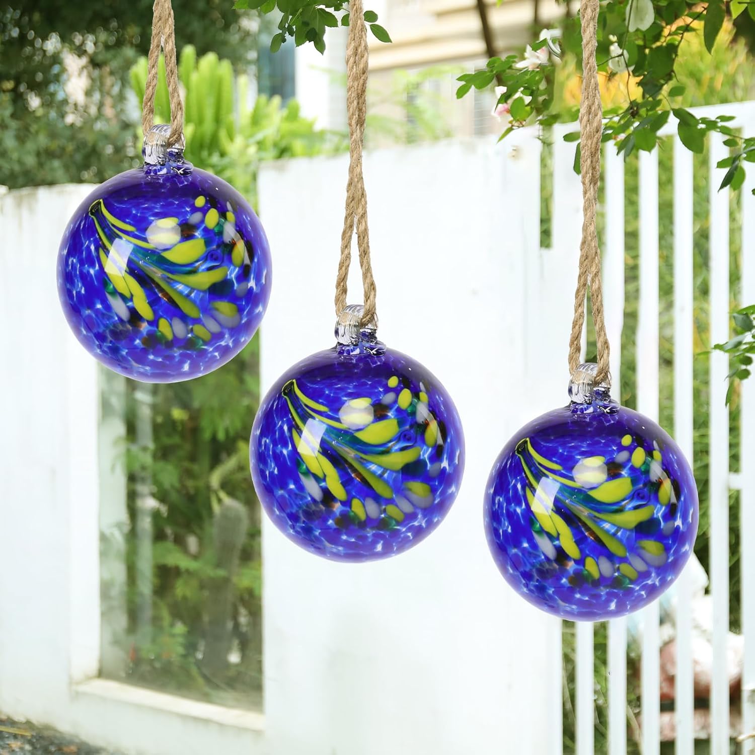 • 【Outdoor Garden Decor】Blue glass ball are a mix of blue swirl, each of hanging glass gazing ball is handmade by our experienced and professional craftsmen, making every piece unique in color and shape