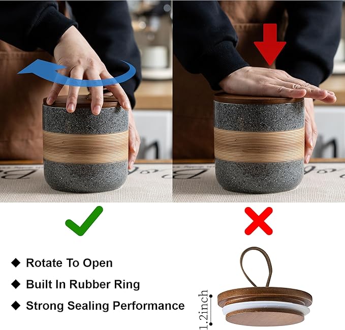 • Rope Cover Design: Each food storage container is equipped with a wooden lid, which has strong sealing and effectively isolates air, moisture, and odors, keeping food dry and fresh, and extending the shelf life of food. There is a unique rope design on the lid, which is easy to open without losing its beauty