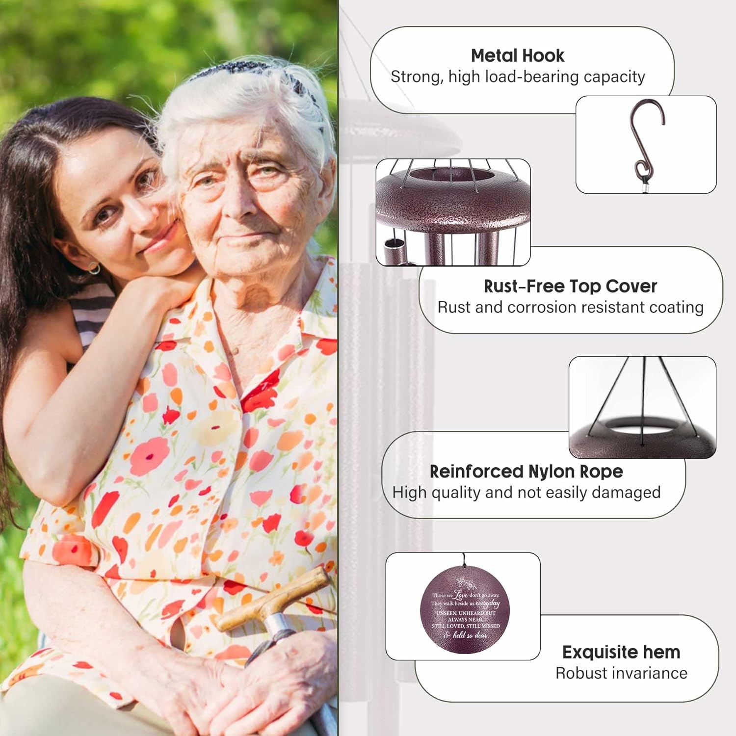• THOUGHTFUL GIFT: The sympathy wind chime comes with exquisite gift box securely packaged, also you can choose a gift card, customized plus gift card which is excellent condolence gift for the loss of a dad, mom, son, daughter, brother, sister, bring comfort to them.