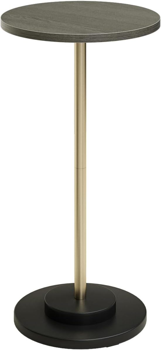 Masupu Drink Table, Round Side Table for Small Spaces, Pedestal Side Table, Small End Table with Metal Base, for Living Room, Bedroom, Bathroom, Grey
