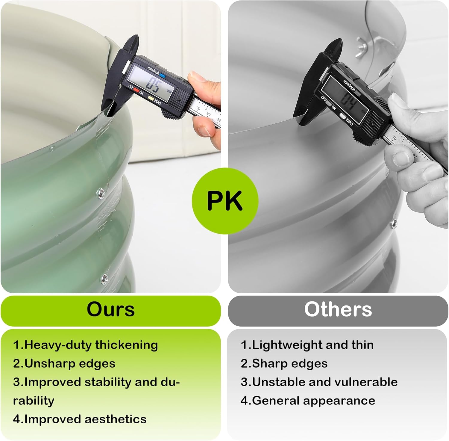 • 🌳 Unmatched Stability: Crafted with 0.5mm thick overlapping galvanized panels, reaching up to 1.8mm at the seams, our raised garden bed provides excellent strength and stability. The integrated screw fastening edge and unique oval form ensure it remains solid and secure, even when fully planted.