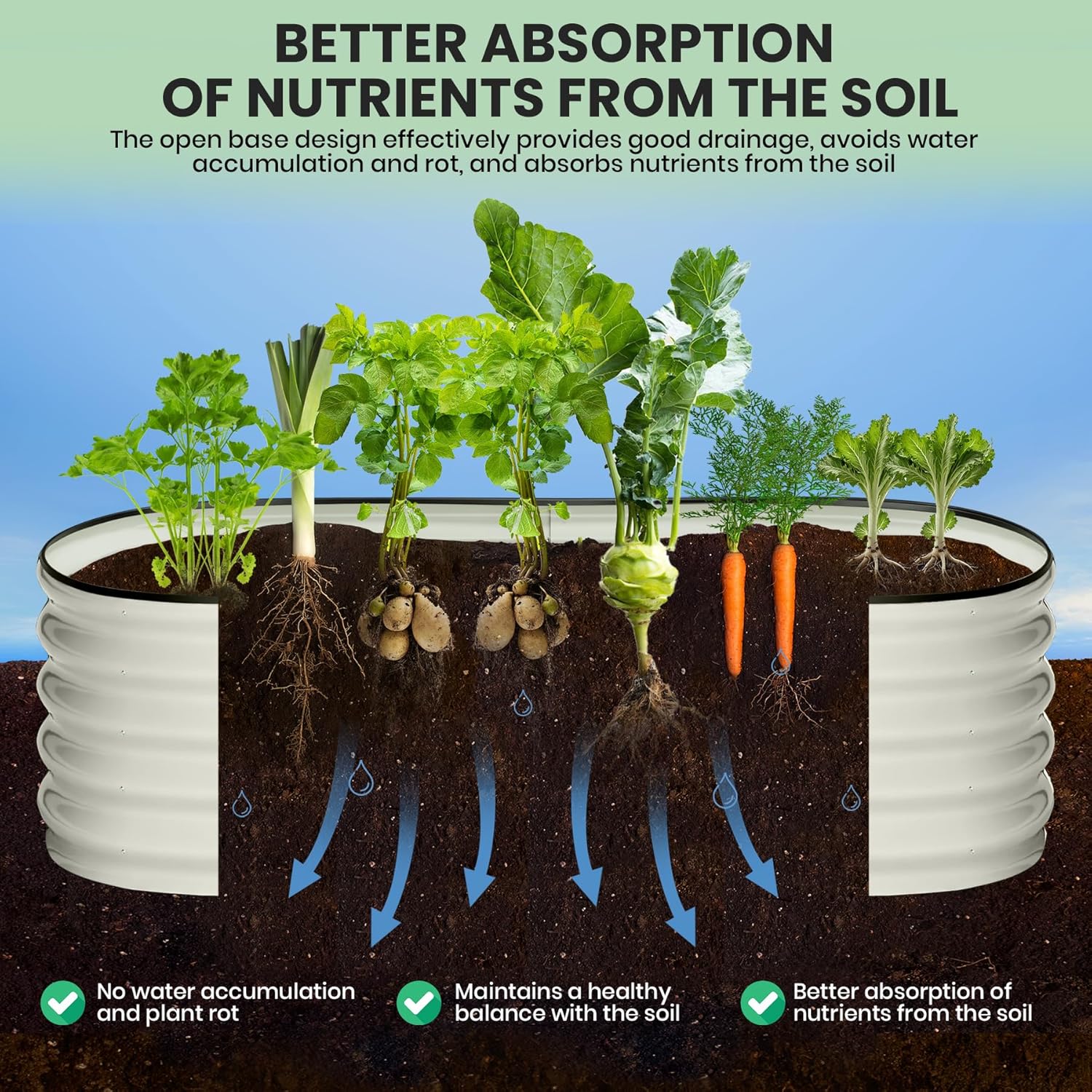 • 🌳 Unmatched Stability: Crafted with 0.5mm thick overlapping galvanized panels, reaching up to 1.8mm at the seams, our raised garden bed provides excellent strength and stability. The integrated screw fastening edge and unique oval form ensure it remains solid and secure, even when fully planted.