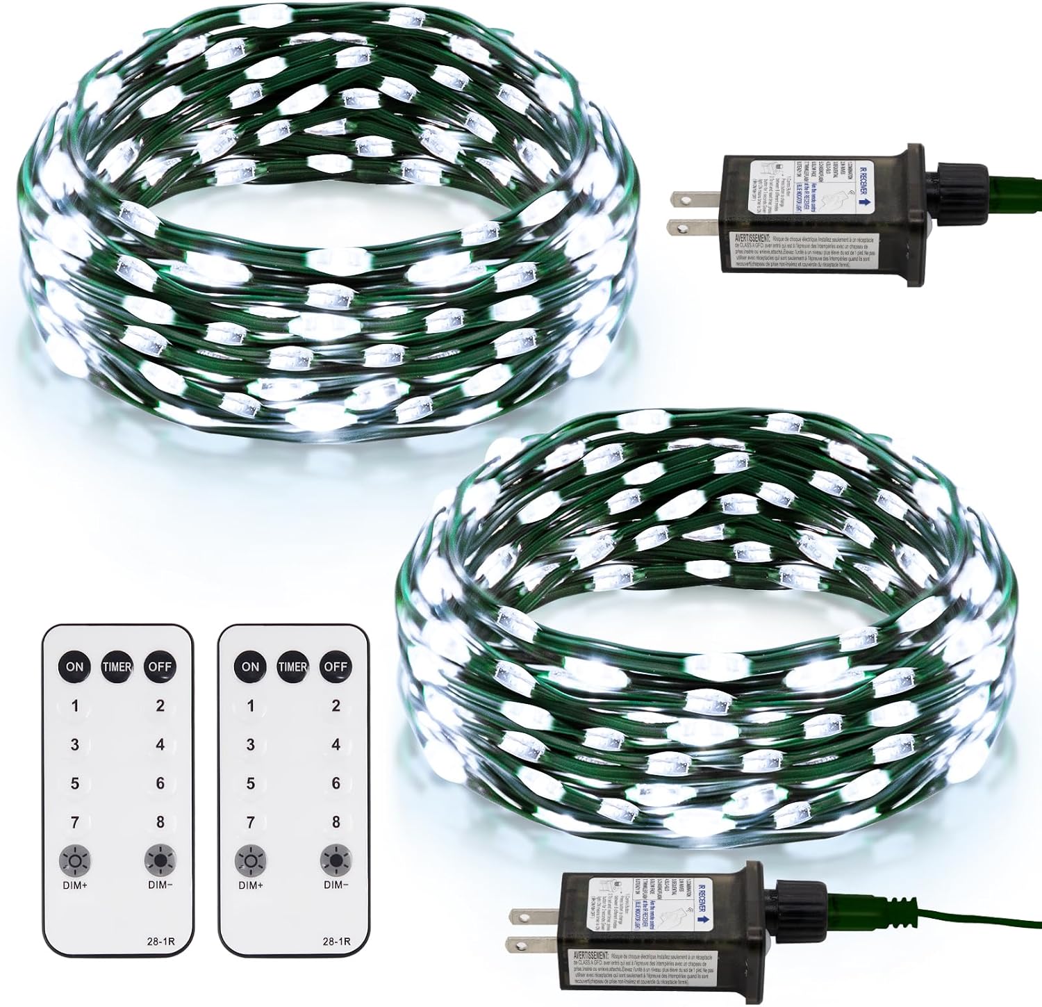 2 Pack Fairy String Lights Plug in, 33Ft Green Wire 100 Micro Starry LED Outdoor String Lights with 8 Modes Timer IP68 Waterproof Twinkle Lights for Bedroom Garden Christmas Home Decor (Cool White)