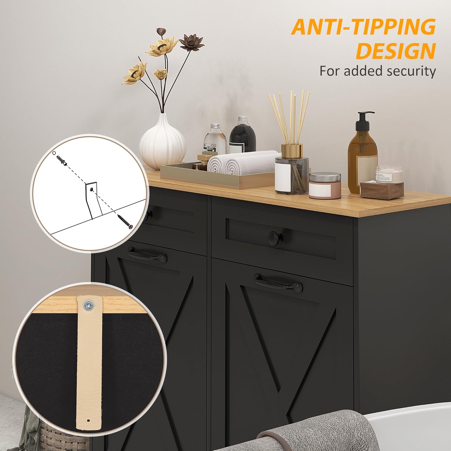 HOMCOM Tilt Out Laundry Hamper Cabinet with 2 Removable Baskets, Freestanding Bathroom Storage Cabinet with 2 Drawers, Trash Can Cabinet for Living Room, Laundry Room, Black