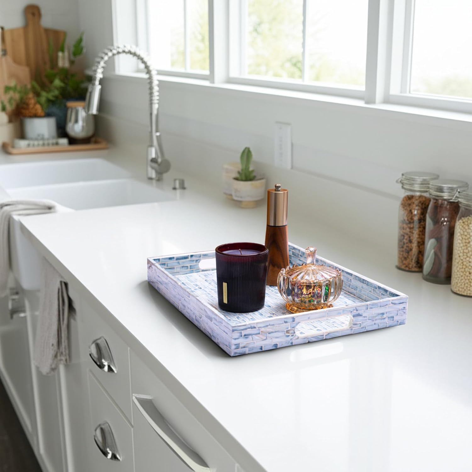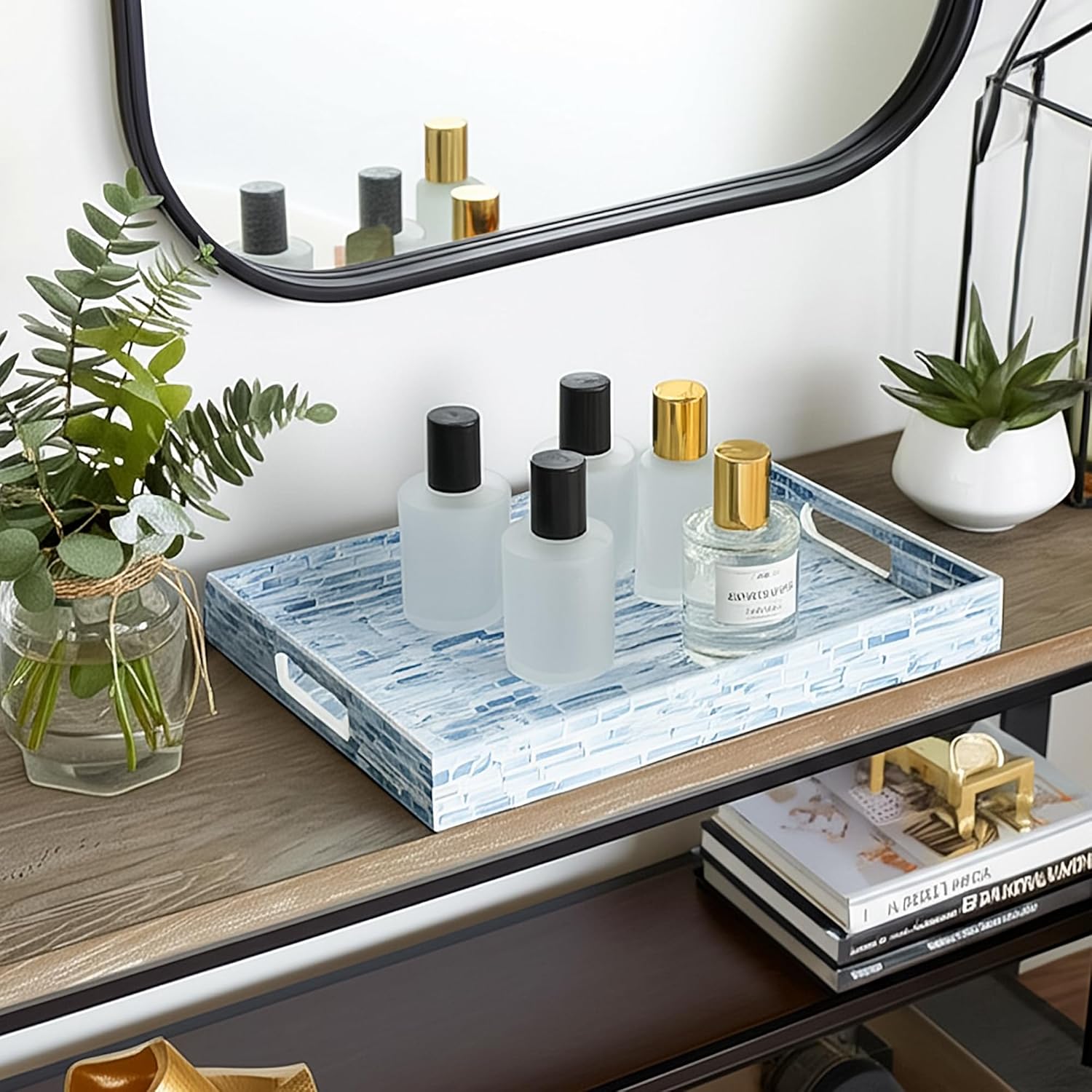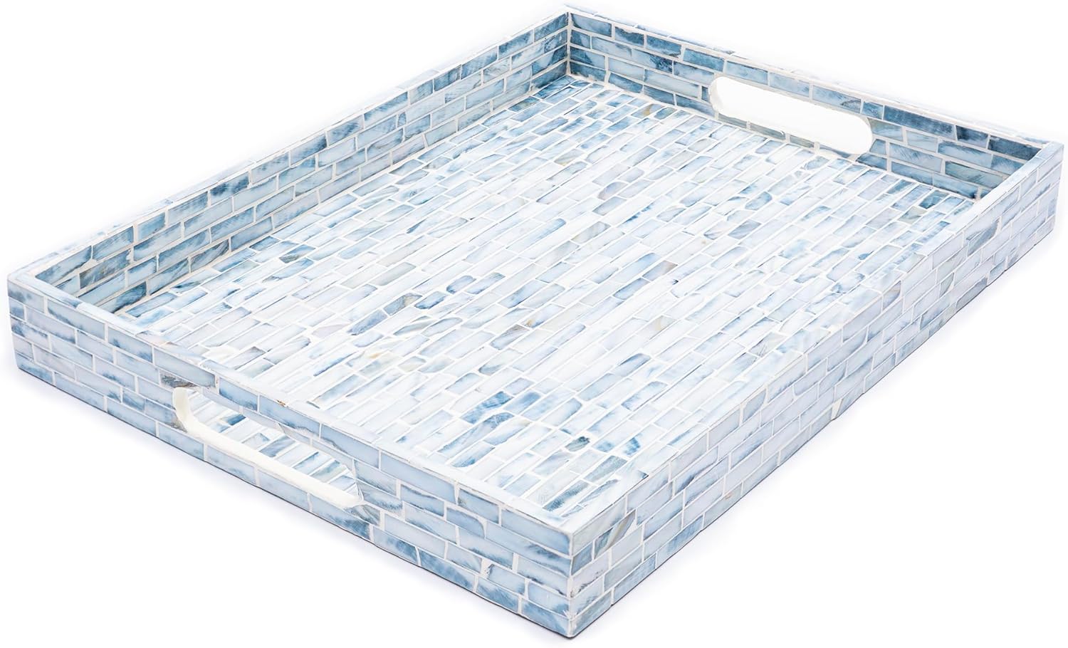 • STYLISH FLORAL TRAYS with the great workmanship by Vietnamese artisans, flawlessly finished with strong wood core and blue floral pattern well-sorted MOTHER OF PEARL SHELLS inlayed on the surface creates an elegant handmade centerpiece to brighten your decoration, best matches any beach/coastal nauticaNew Home Gifts For Homel theme.